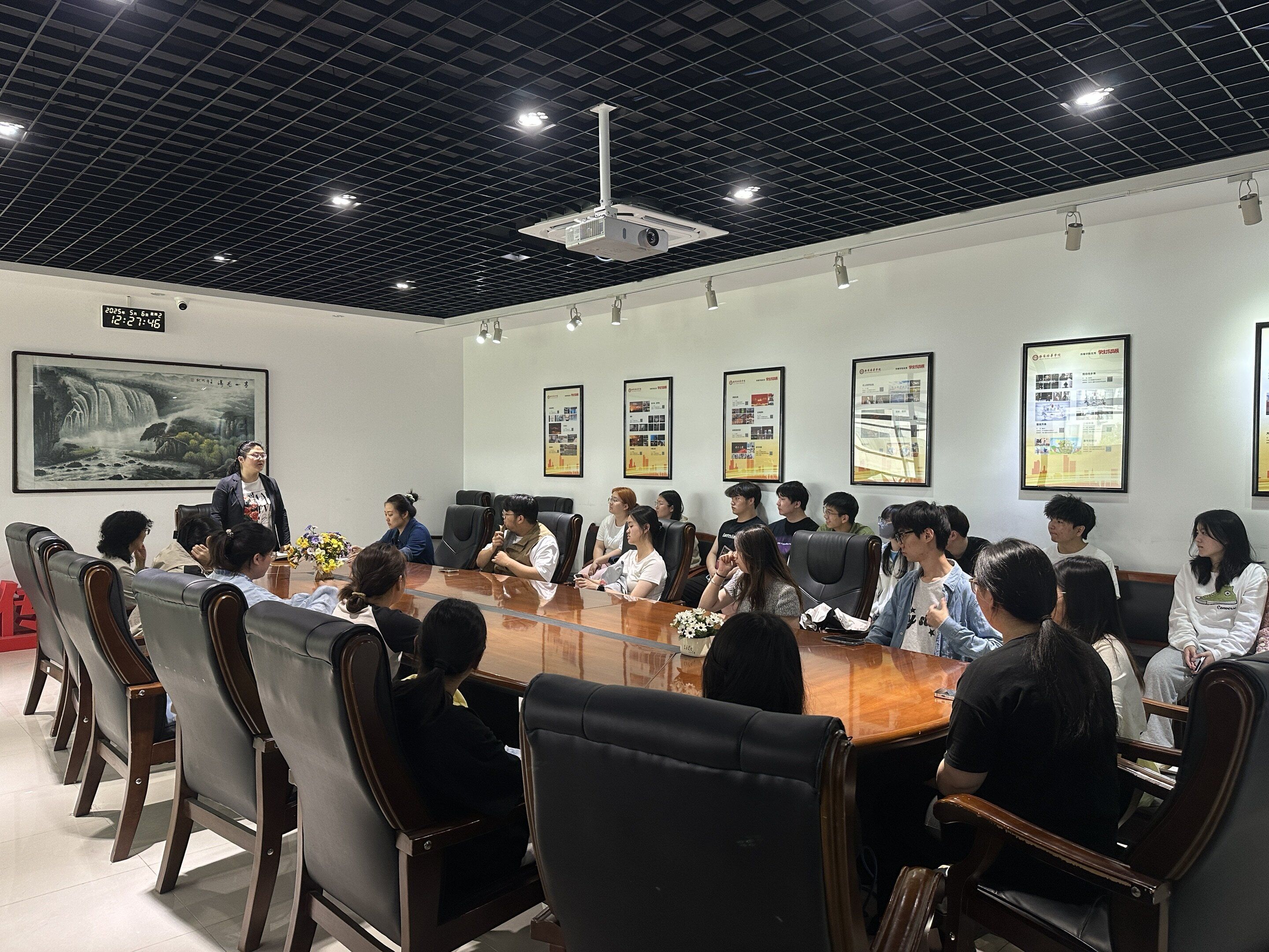 学生座谈会后,教师座谈会随即召开,聂婷老师主持会议并首先欢迎新入职的青年博士王泽亚加入教师队伍。与会教师围绕教学创新与人才培养展开热烈讨论,针对“如何打通同一学期不同课程考核作业,在减负同时提升学习系统性”,提出整合关联课程实践任务、避免重复考核的建议;此外,针对新兴技术对教学的影响,如“学生使用AI完成作业”的现象,教师们探讨了引导学生合理应用新技术、平衡工具辅助与原创能力培养的路径,提议增加作业个性化要求,强化过程性考核。此外,教师们就毕业展话剧《蓬蒿人》的排演筹备、毕业论文质量提升等工作展开交流,建议将课程实践与话剧排演结合,落实学院毕业论文(设计)会议精神,强化毕业论文(设计)选题与科研项目的关联性。