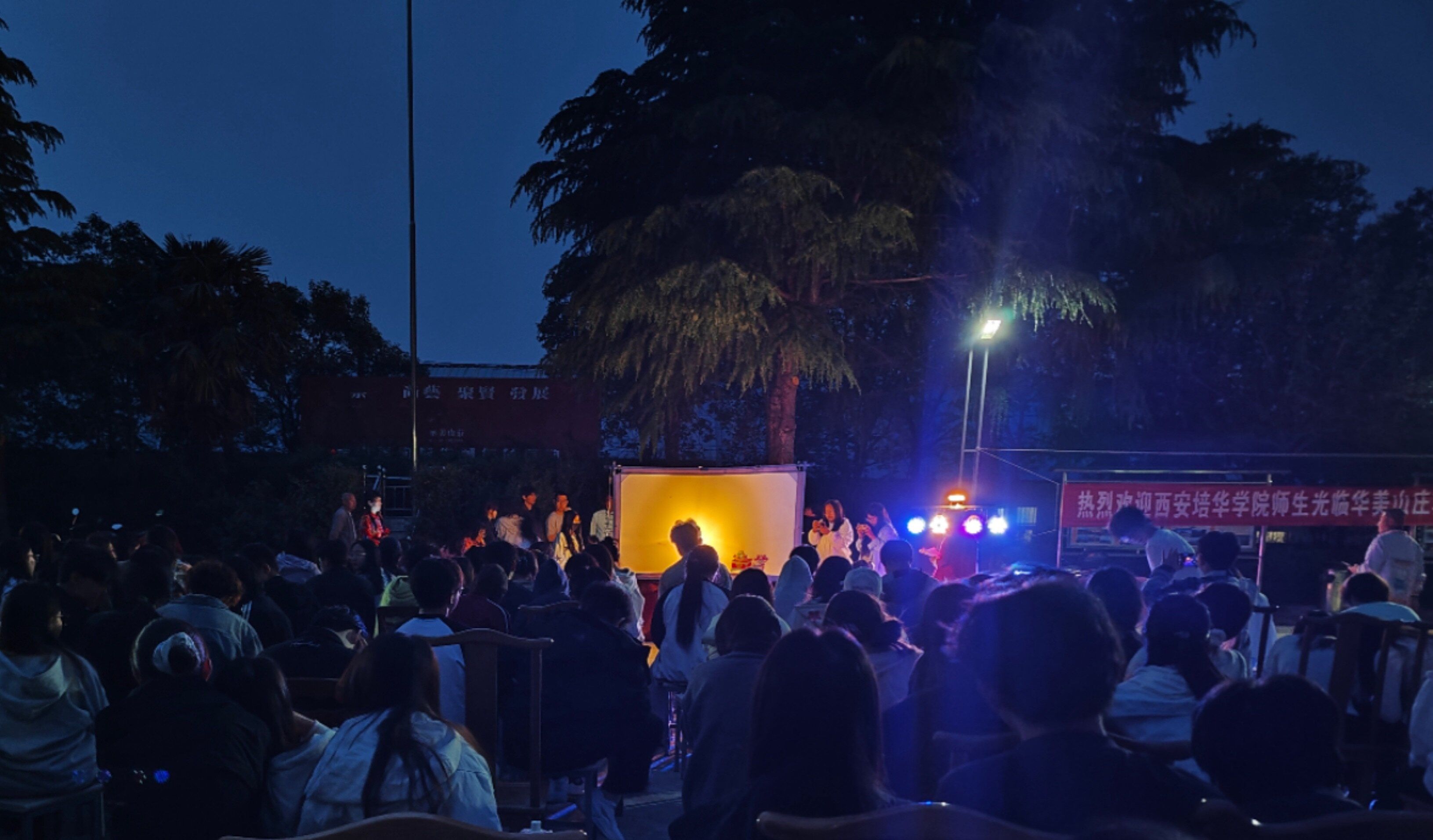 4 月 22 日,师生在西岳庙和仙峪景区进行拍摄实践。学生围绕古建细节和自然风光选题,学习在不同光线条件下进行构图和光影运用。教师现场指导如何利用补光设备优化画面效果,鼓励学生尝试不同拍摄角度,将历史厚重感与现代审美相结合。在仙峪景区,学生面对复杂的自然光线条件,积极探索如何利用现有设备优化拍摄效果。他们尝试使用反光板、补光灯等工具调整光比,确保画面质量。各小组分工协作,有的负责寻找最佳拍摄点,有的专注于设备操作,有的则实时查看画面效果并提出调整建议,现场氛围忙碌而有序。晚上观看华阴老腔表演,感受传统戏剧舞台氛围。
