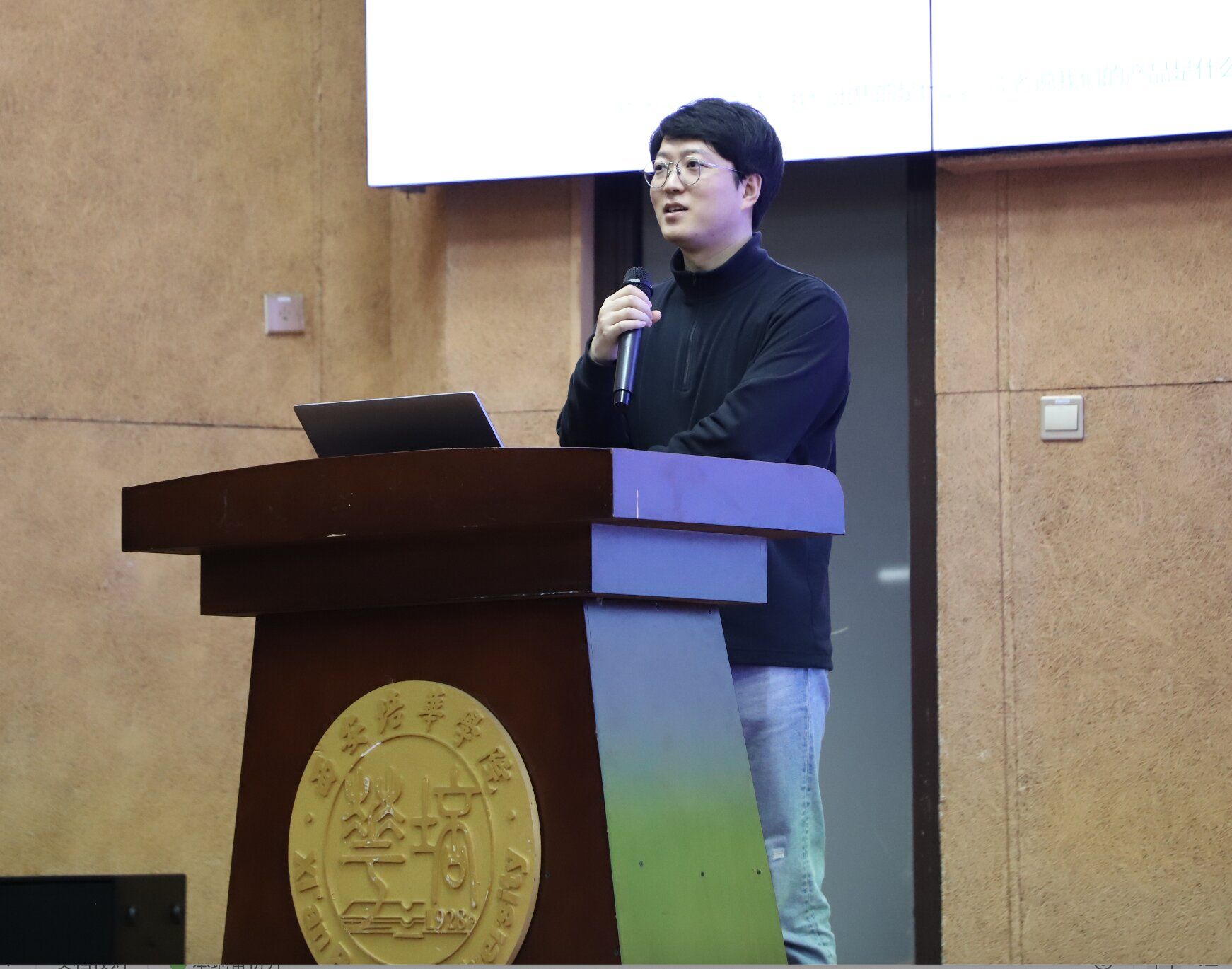 讲座由知名新媒体运营专家、西安北方星辰设计有限公司CEO、AI设计领域资深从业者晁杨博主讲。晁杨博总经理结合自身丰富的行业经验,从AI技术的最新发展、AI在影视动漫设计中的应用案例、新媒体运营的核心策略等多个维度,为在场师生带来了一场内容丰富、视角前沿的学术盛宴。