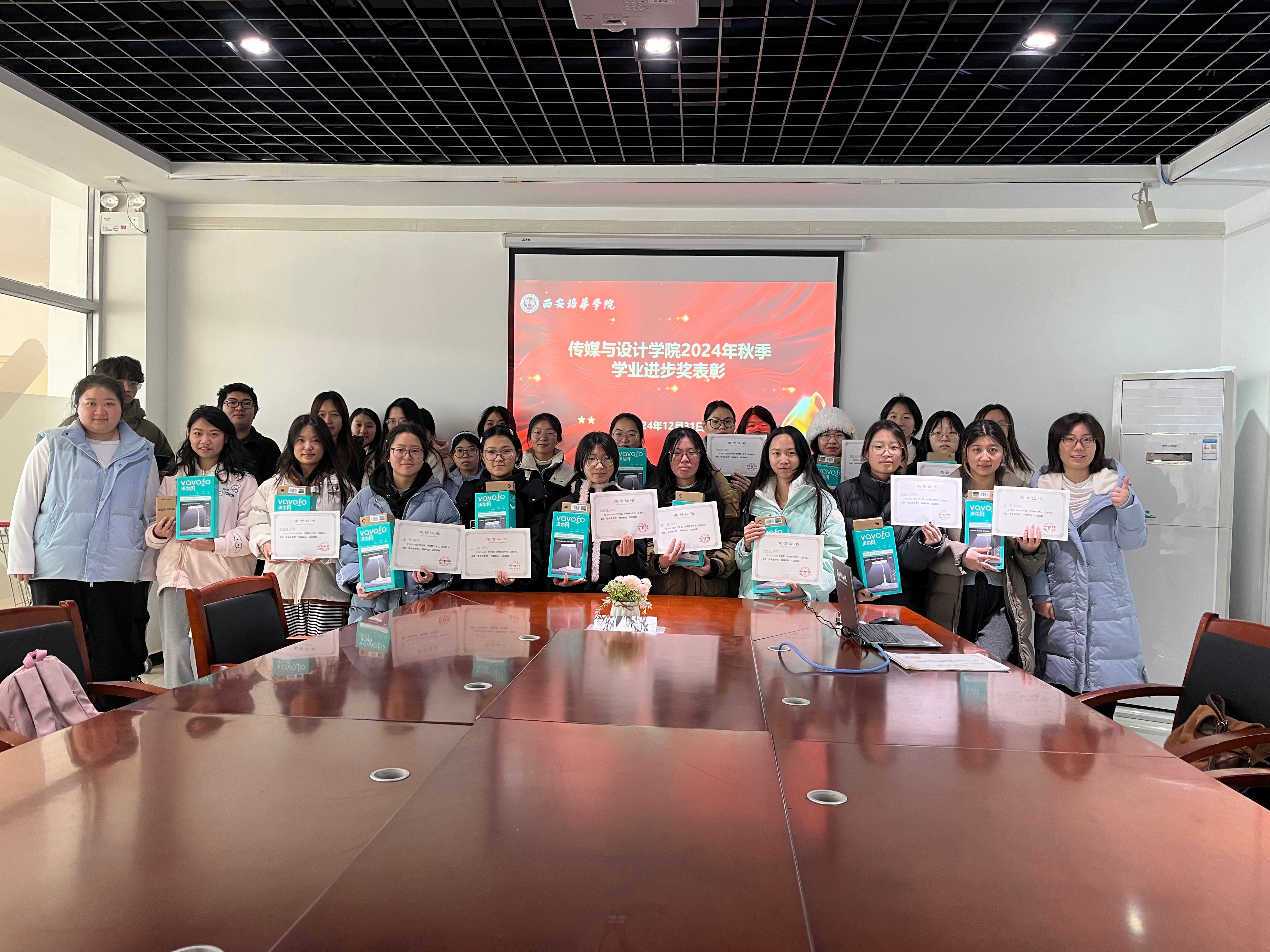 2024年12月30日,传媒与设计学院在汇知楼第三会议室举行了2024年度学业进步奖表彰大会。本次大会旨在表彰在学业上取得显著进步的学生,鼓励他们在学业上继续努力,追求卓越。