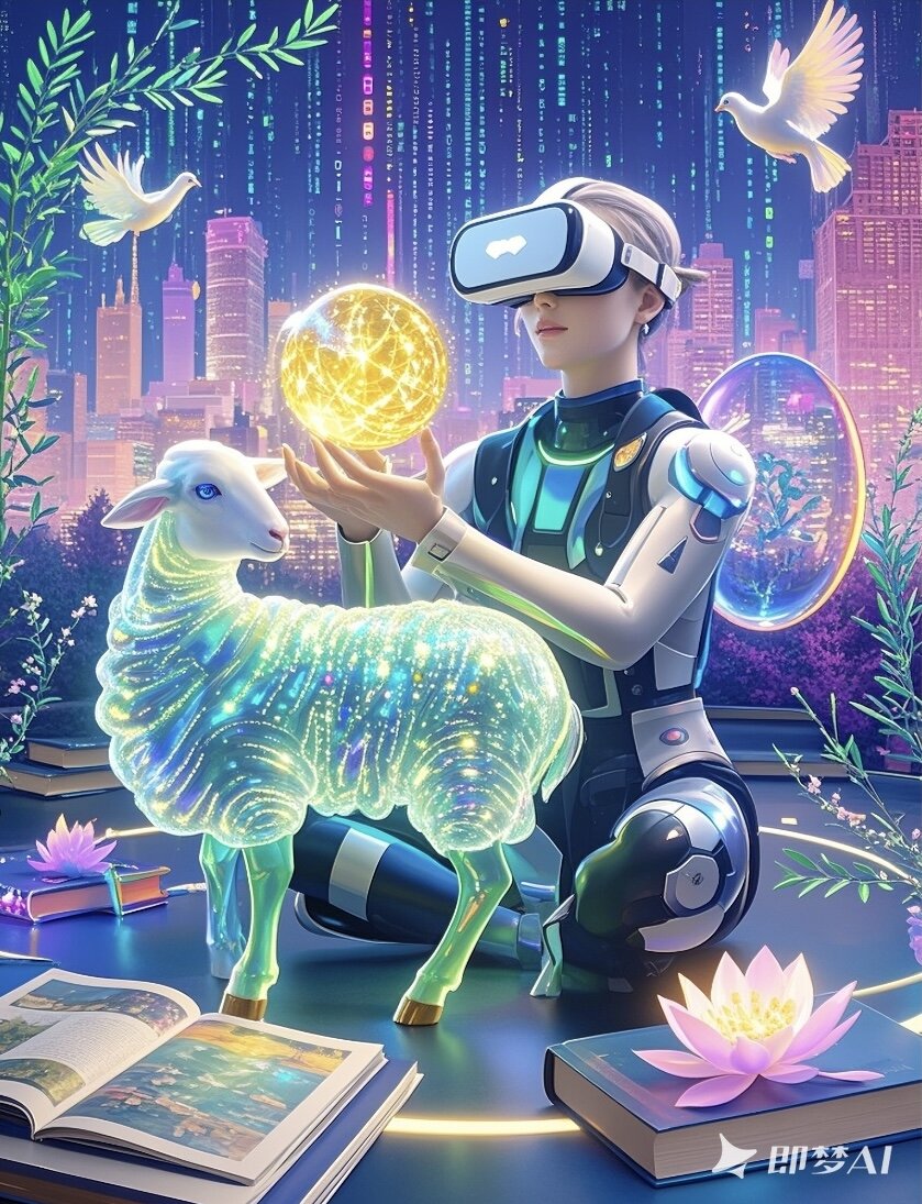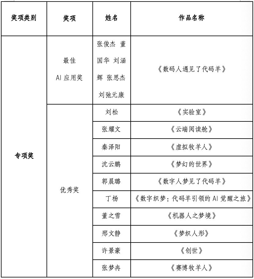 活动伊始,对参赛作品进行了集中展演与展示。参展作品涵盖AI生成的绘画、短片、动画等形式,围绕“数字人梦见了代码羊”这一主题,深入探索了AI在构建虚拟梦境、觉醒与自我意识表达等方面的创新应用。这些作品展现了学生对人工智能技术的深刻理解与艺术创作的非凡潜力,赢得了在场师生的高度关注和热烈讨论。