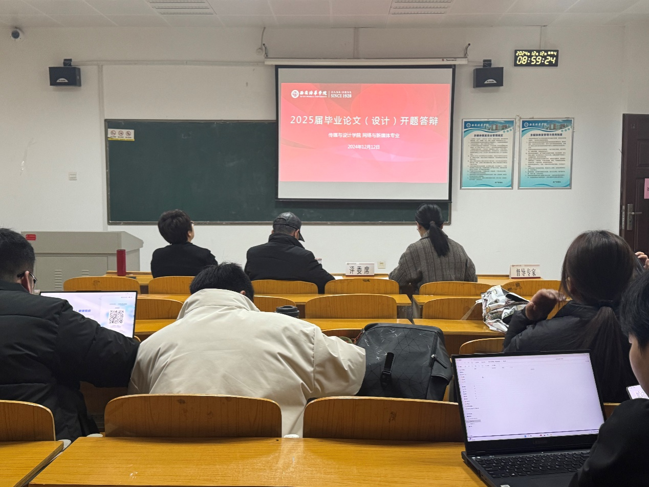 2024年12月12日,网络与新媒体专业成功举办了2025届毕业论文(设计)开题答辩。本次开题答辩分为三个答辩小组进行,地点分别在汇知楼6415、6418以及6417。此举为全面评估学生的研究课题与方法提供了一个专业的平台,确保学术成果的质量与实用性。