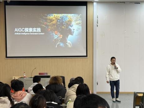 讲座内容涵盖了AIGC在不同领域的技术应用,从动画特效到视觉合成,生动地展现了AI如何改变艺术创作的传统模式。在讲座中,胡国军老师深入讲解了AIGC在设计领域的前沿应用,结合实例展示了AI技术如何提升视觉效果制作的效率与创意水平,并针对AIGC工具的实际操作进行了培训,帮助学生掌握相关技术的基础使用方法。这些内容不仅为学生提供了最新的行业趋势,更进一步开拓了他们在AIGC技术应用方面的视野。