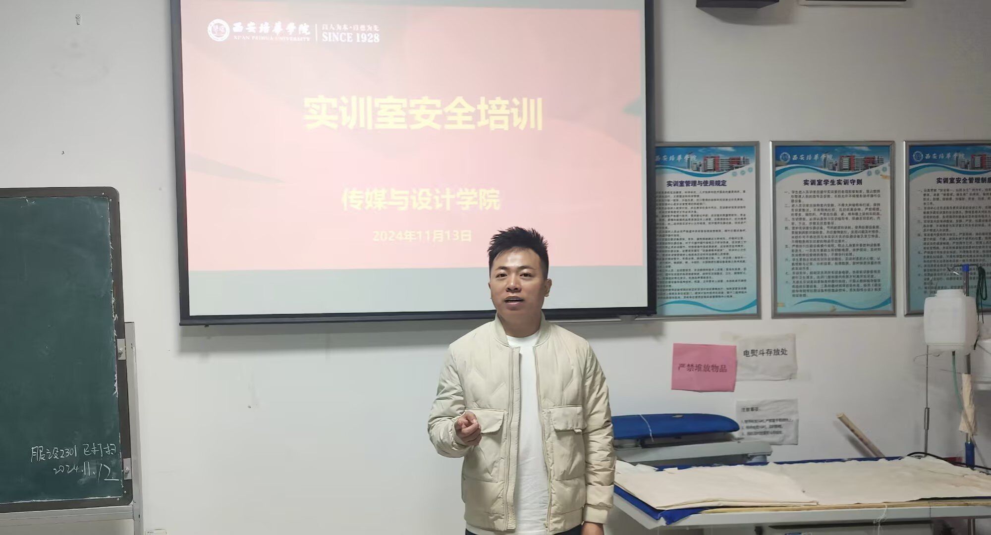 为了加强服装与服饰设计专业学生的消防安全意识,增强自我保护和安全能力,加强生命教育和安全防范意识,2024年11月13日,实验中心在服装与服饰实训室6215教室开展了一次服装专业学生全员消防安全讲座会议。