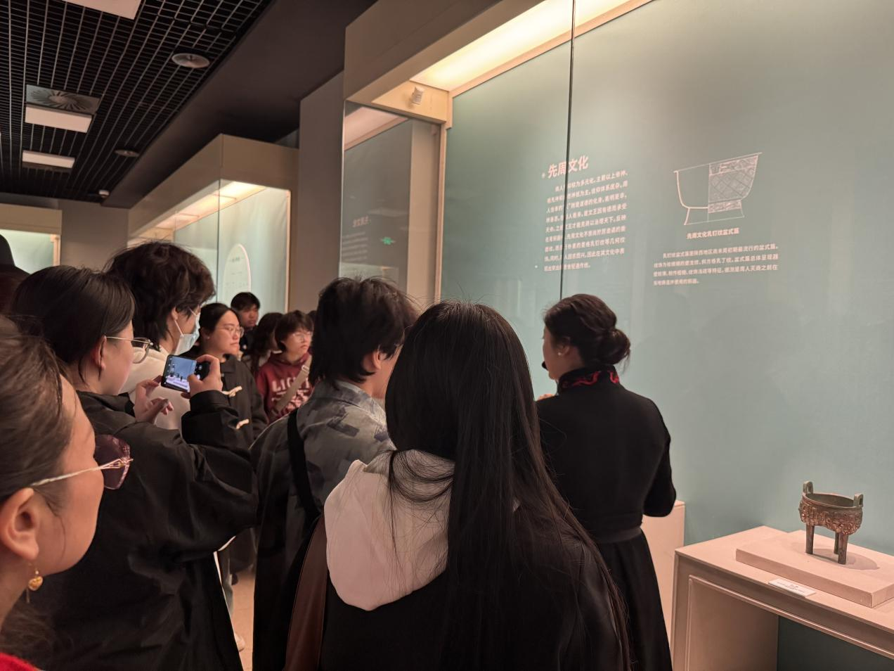 11月5日,学生们首先来到了宝鸡青铜器博物院。在这里,他们近距离观察了珍贵的青铜器文物,了解了青铜器的制作工艺和历史背景。通过与博物院专家的交流,学生们对青铜器的铸造技术、装饰艺术以及在当代设计中的应用有了更深入的认识。