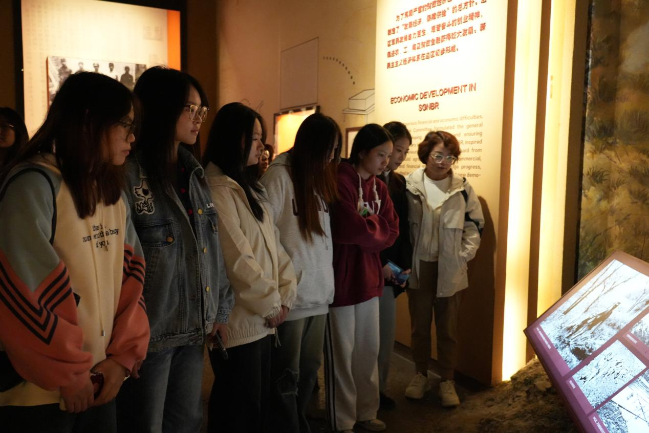 这些文物不仅仅是历史的见证,更是当年宣传工作的有力载体。师生们沉浸于大量的文献、影像资料中,跟随讲解员全面学习了中共中央在延安十三年领导全国革命走向胜利的光辉事迹,同时也感慨还好有当年的那些记录者,我们才可以见微知著,再次感受曾经艰苦卓绝却又波澜壮阔的革命时代。