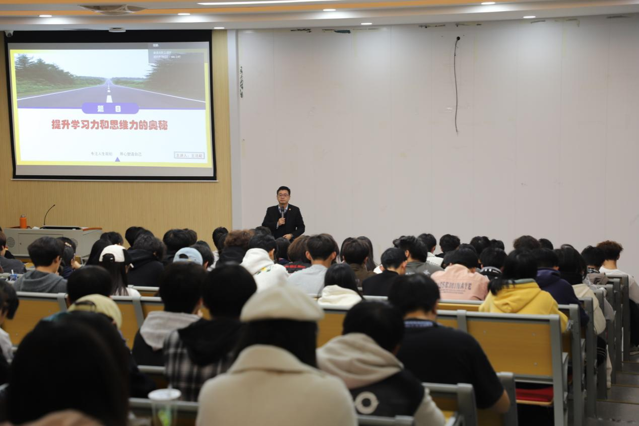最后,王老师强调,大学生应该树立持续自我提升的意识,不断学习和积累知识、经验和技能。只有不断提升自己的综合素质和专业能力,才能在未来职场竞争中占据优势地位,把握主动权。 通过本次讲座的聆听,学生对未来发展以及职业生涯的规划有了更加清晰的认识,力争将所学知识和经验运用到实际工作与生活中,不断提升自我,勇攀高峰!
