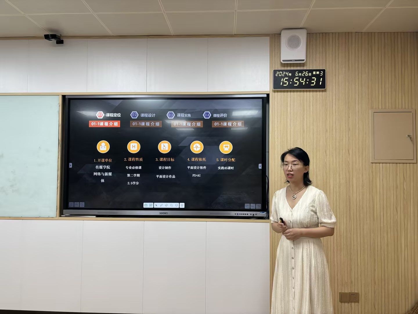 为进一步落实立德树人的根本任务,促进课程思政建设经验交流与推广,充分发挥课程思政育人功能,6月26日下午,传媒与设计学院在博远楼智慧教室2203举行了课程思政示范课堂观摩活动,并在此基础上积极开展课程思政示范课线上课程申报工作。经各系推荐、学院优选,共有五位课程思政示范课负责人在本次观摩活动中进行课堂教学示范,活动由学院督导组组长、新闻学专业带头人梁小凤主持,各专业40余位教师现场进行了观摩。
