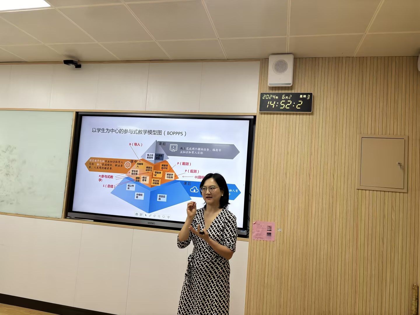 广播电视编导专业教师晋珊珊对课程《纪录片创作》现场进行了教学展示。晋老师围绕家国情怀、主题表达、文化认同、创新精神、职业理想、陕西本土文化五个方面详细说明了课程思政的目标和内容,通过以学生为中心的参与式教学模型图展示了课程的整体设计思路,她强调,授课教师应注重专业知识的拓展和案例累积,能够有效促进课程思政元素和专业知识的融合。