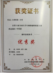 在我院新闻与传播系谷艺萌老师的指导下,周丹语、王雨晴团队创作的项目《西安事变纪念馆VR全景展示》获得了西北赛区二等奖,并报送全国参赛,在全国赛中荣获视听媒体类三等奖。该项目以VR新媒体技术与传统红色故事相结合,探索“VR+红色故事”的契合点,深入挖掘西安事变纪念馆背后的红色文化底蕴,制作VR全景视频,进行红色故事的讲述与传播。此外,谷艺萌老师的指导的宋承泽、田宇、郑阳团队创作的《小虎科普:行书》获得西北赛区视听媒体类优秀奖。