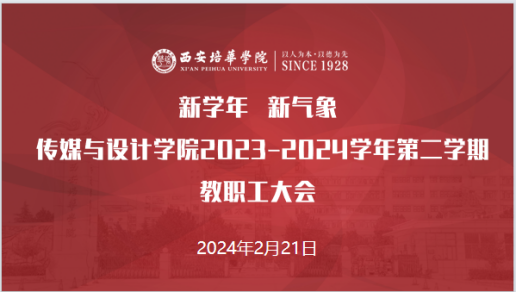 新学年新气象,2月21日上午,传媒与设计学院在汇知楼3505召开了2023-2024学年第二学期教职工大会,学院全体教职工参加了此次会议,会议由副院长张荣花主持。