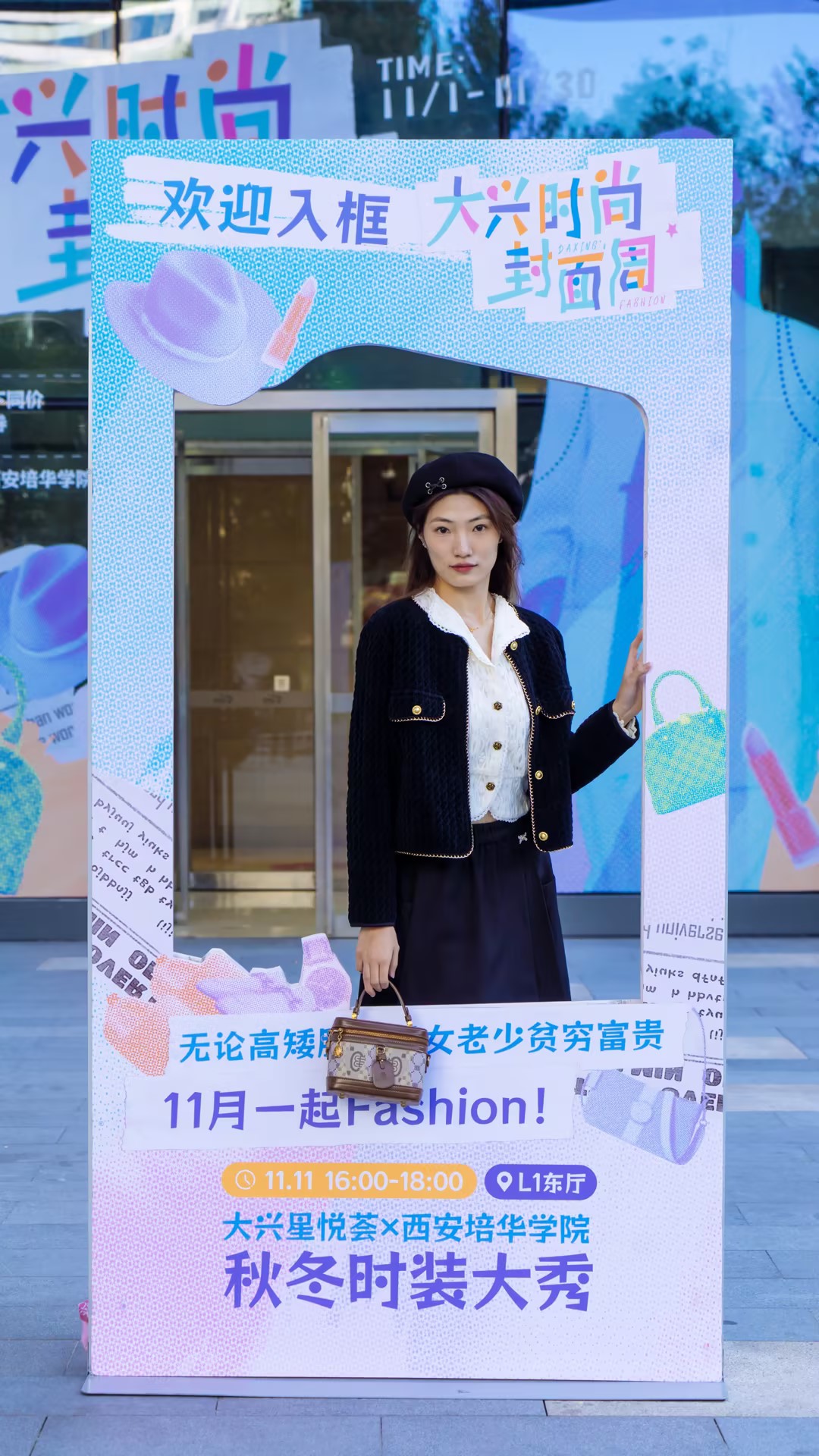 龙湖西安大兴星悦荟11月【大兴时尚封面周】活动即将开启。活动前夕,大兴星悦荟联动西安培华学院校模特队同学及场内知名零售品牌洛可可、薇迎、太平鸟男装、英落易、调色师、屈臣氏,携秋冬季新品进行统一棚拍,并设计为线下时尚封面氛围展,进行全月展示。