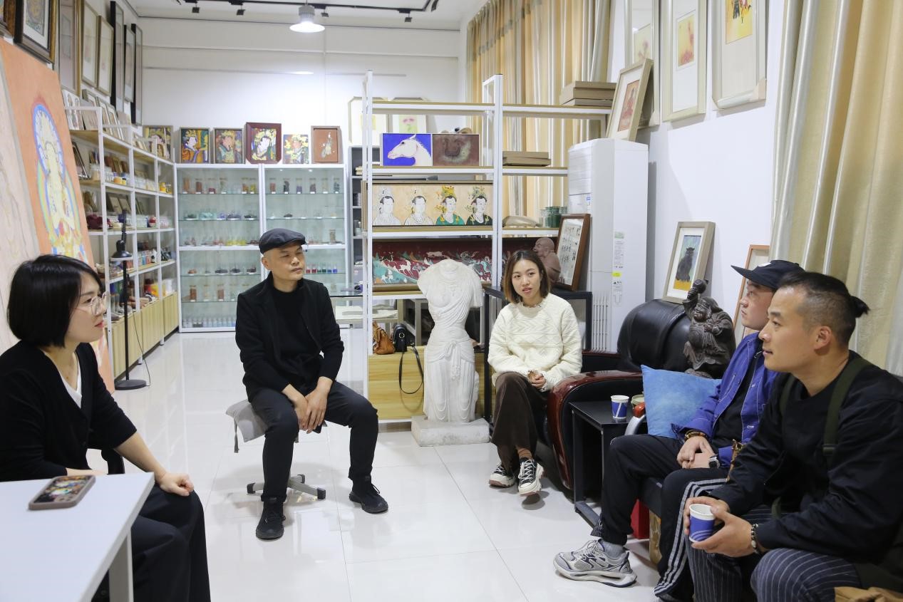 时尚艺术设计系主任贾亚丽对于工艺美术专业的学情进行了简单的介绍,就我校人才培养方案、教师教学管理及毕业设计管理进行分享。同时,张钦老师通过具体作品为师生讲解壁画的类型及不同类型的特点和制作技法介绍后,师生参观了工艺美术专业实训室及张钦老师壁画工作室,了解了工艺美术上课过程。随后,宫丰敏老师一行前往学术交流中心和工美楼参观,贾亚丽主任分享了我院在工艺美术教育方向在教学和实践中的经验。