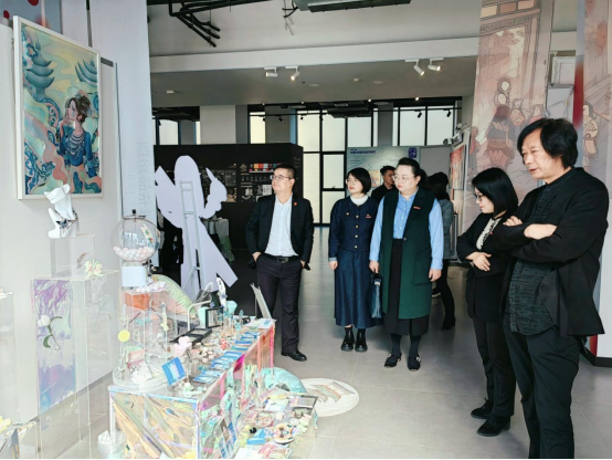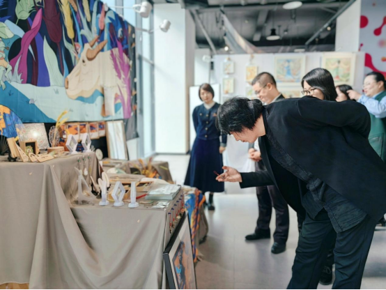 活动前,蔺宝钢教授、郭继锋教授及杨志博士前往学术交流中心参观师生作品展。
