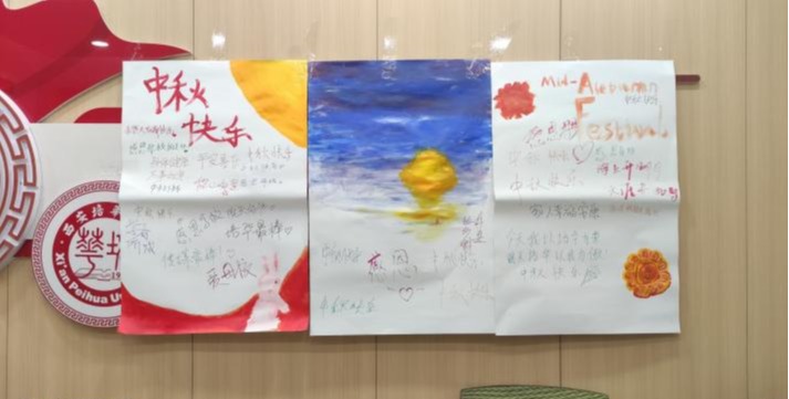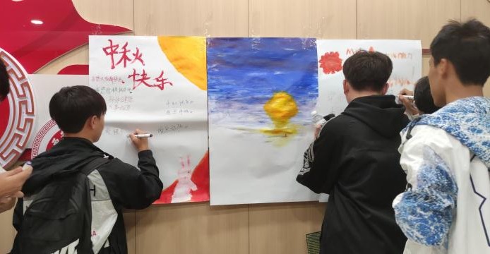 活动最后,与会同学们纷纷在手绘海报上留下自己对中秋佳节、对学校的美好祝愿。