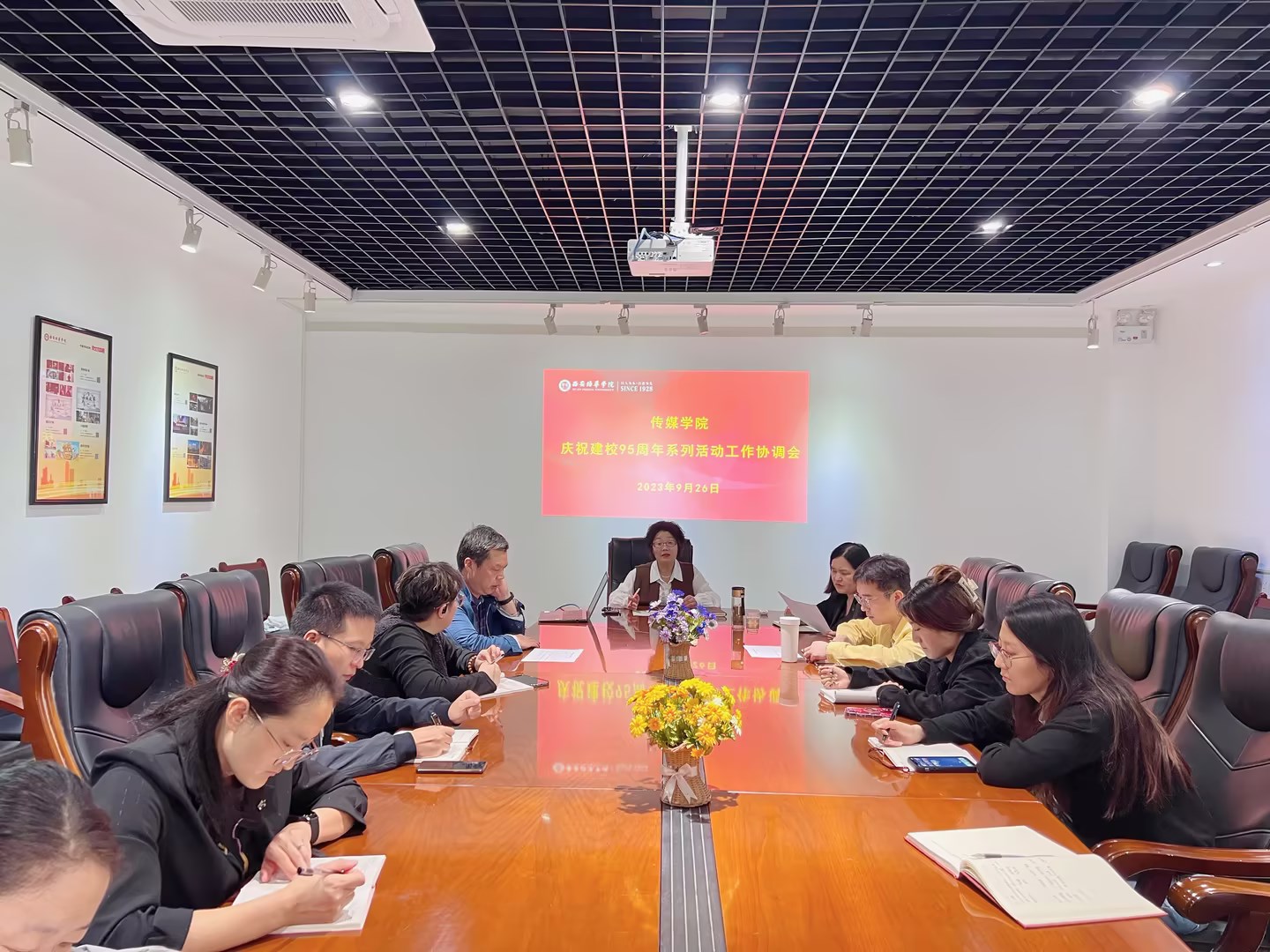 2023年10月,我校将迎来建校95周年。为全力落实“学校统筹,学院为主,师生校友广泛参与”的工作方针,保证学院校庆系列活动有序开展,切实展现传媒风貌,献礼95周年,传媒学院于9月26日在汇知楼第四会议室召开“庆祝建校95周年系列活动工作协调会”。学院常务副院长王西娅、党委书记兼行政副院长江俊瑞、副院长张荣花、党委副书记高嘉炜及专项负责干事参加此次会议。
