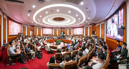 本次会议由中国高等院校影视学会播音主持专业委员会主办、中国传媒大学播音主持艺术学院承办。中国传媒大学党委常委、副校长王晖教授,中国高等院校影视学会学术委员会主任、北京电影学院、北京师范大学胡智锋教授,中国高等院校影视学会会长、中国传媒大学艺术学部学部长丁亚平教授,中国高等院校影视学会副会长兼秘书长、中国传媒大学研究员张国涛,中央广播电视总台农业农村节目中心副召集人、播音指导王世林,中央广播电视总台央广传媒集团党委委员、云听首席内容官、央广云数总经理张东,以及来自全国139所院校的200多位师生参加了本次会议。播音主持艺术学院党委书记李洪岩、院长兼党委副书记喻梅、党委副书记陈卓参会,副院长高原主持本次会议。