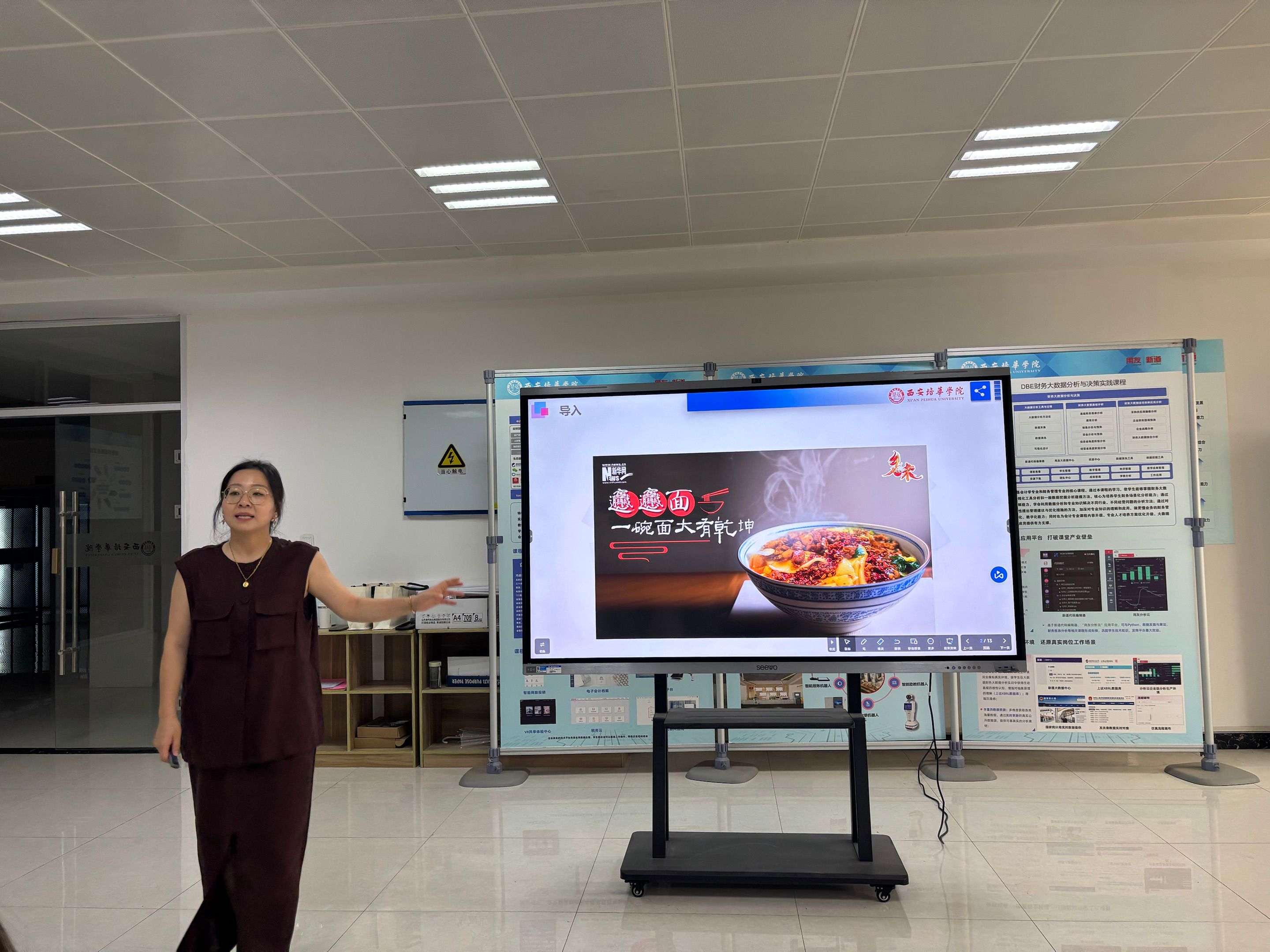 各小组在四位引导员老师的带领下,分别在云财务及智慧教室2201—2203开展“学习目标制定+迷你演练”环节,参训教师依次现场展示教学设计并进行迷你微课演练,经过同组老师互相点评和引导员老师观察反馈,帮助主讲教师进一步优化教学细节。