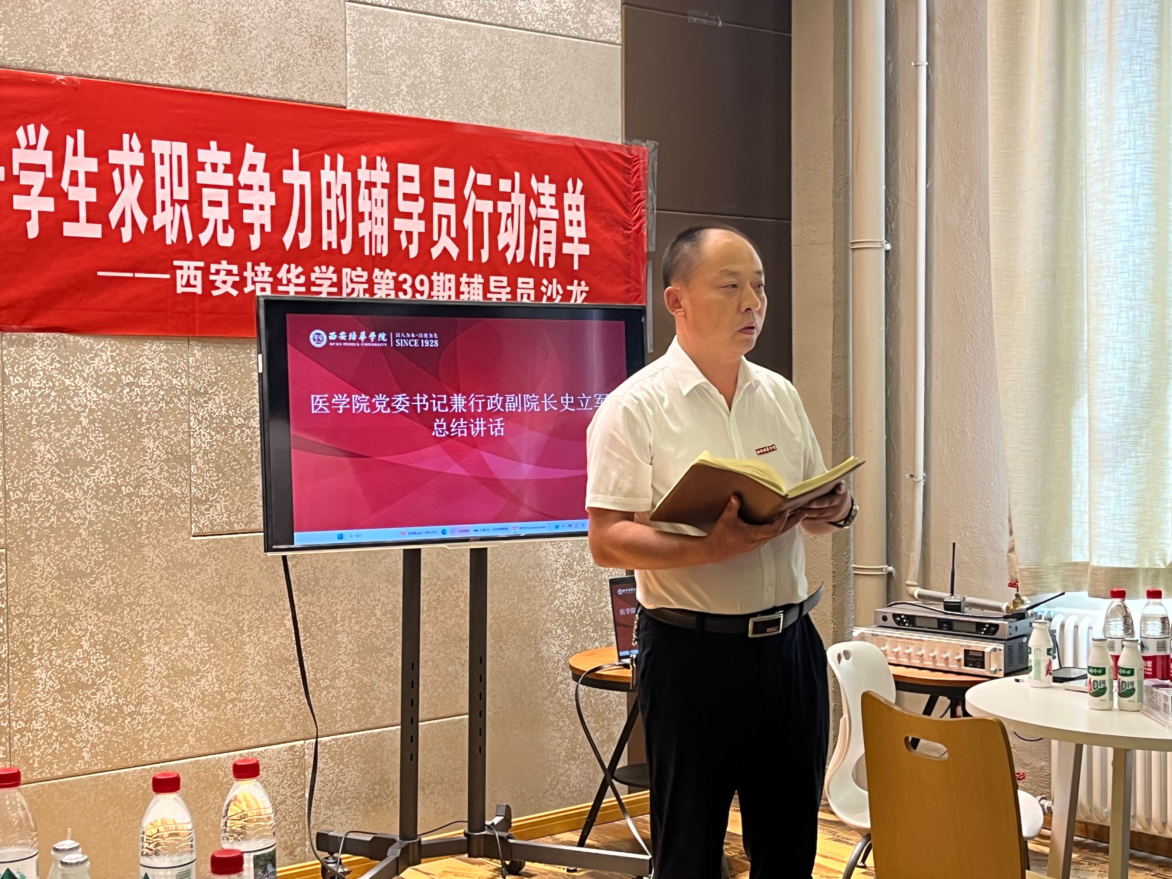 沙龙尾声,医学院党委书记兼行政副院长史立军作总结讲话,他肯定了沙龙成效,并围绕“提升实践育人效能、赋能学生高质量就业”提四点要求:激发内驱,推动学生从“要我做”到“我要做”,深化专业与实践融合;科学评价,将实践成果纳入综合评价,支撑精准就业指导;专业赋能,引导学生学以致用,彰显育人温度;精准育才,发掘潜能、培养关键能力,护航学生成长与职业发展。希望全体辅导员以此次沙龙为新起点,践行实践育人理念,为学生成长筑基,为教育事业注入青春力量。