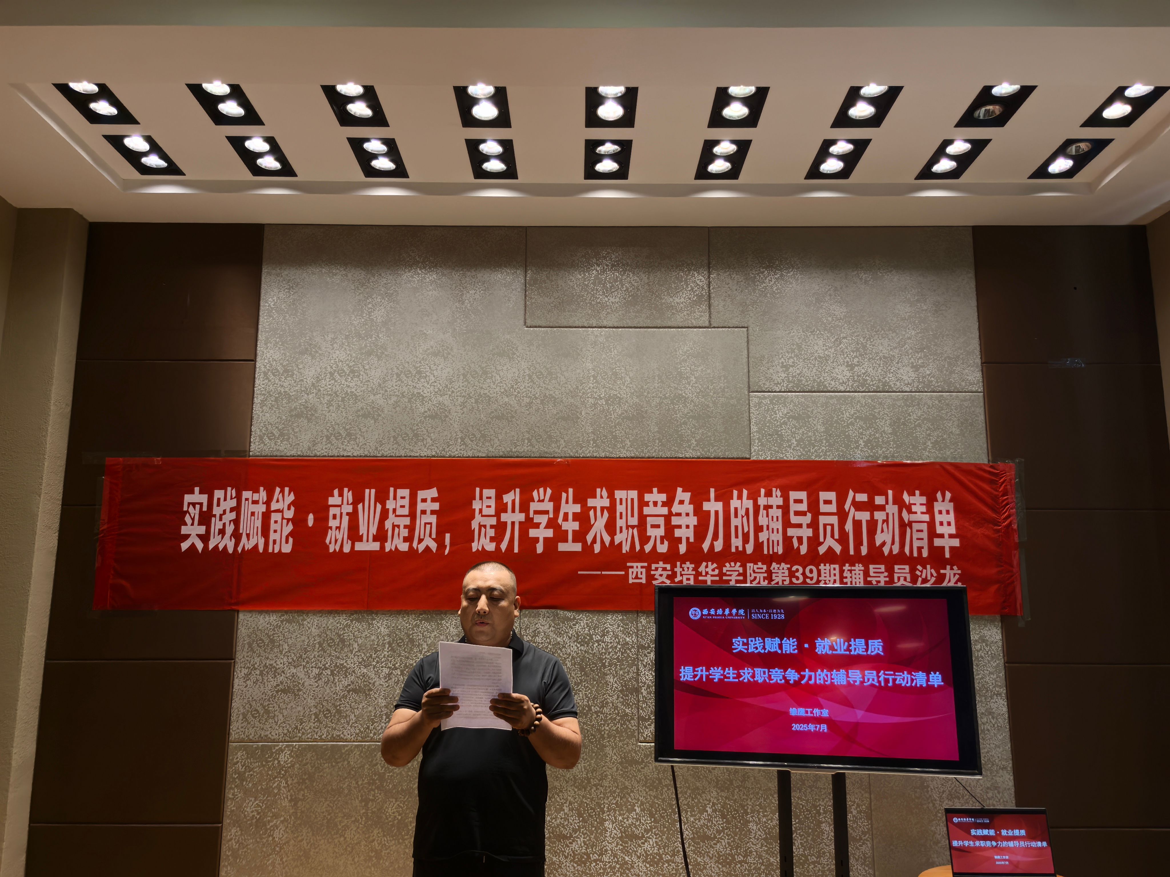 传媒与设计学院党委副书记南斌红致欢迎词。他首先欢迎各位领导及老师莅临本次沙龙。并指出,当前就业形势复杂严峻,提升学生求职竞争力是高校人才培养的重要环节,也是辅导员工作的核心关切之一。希望通过本次沙龙凝聚智慧、分享经验、梳理方法,共同探讨提升学生求职竞争力的有效路径。