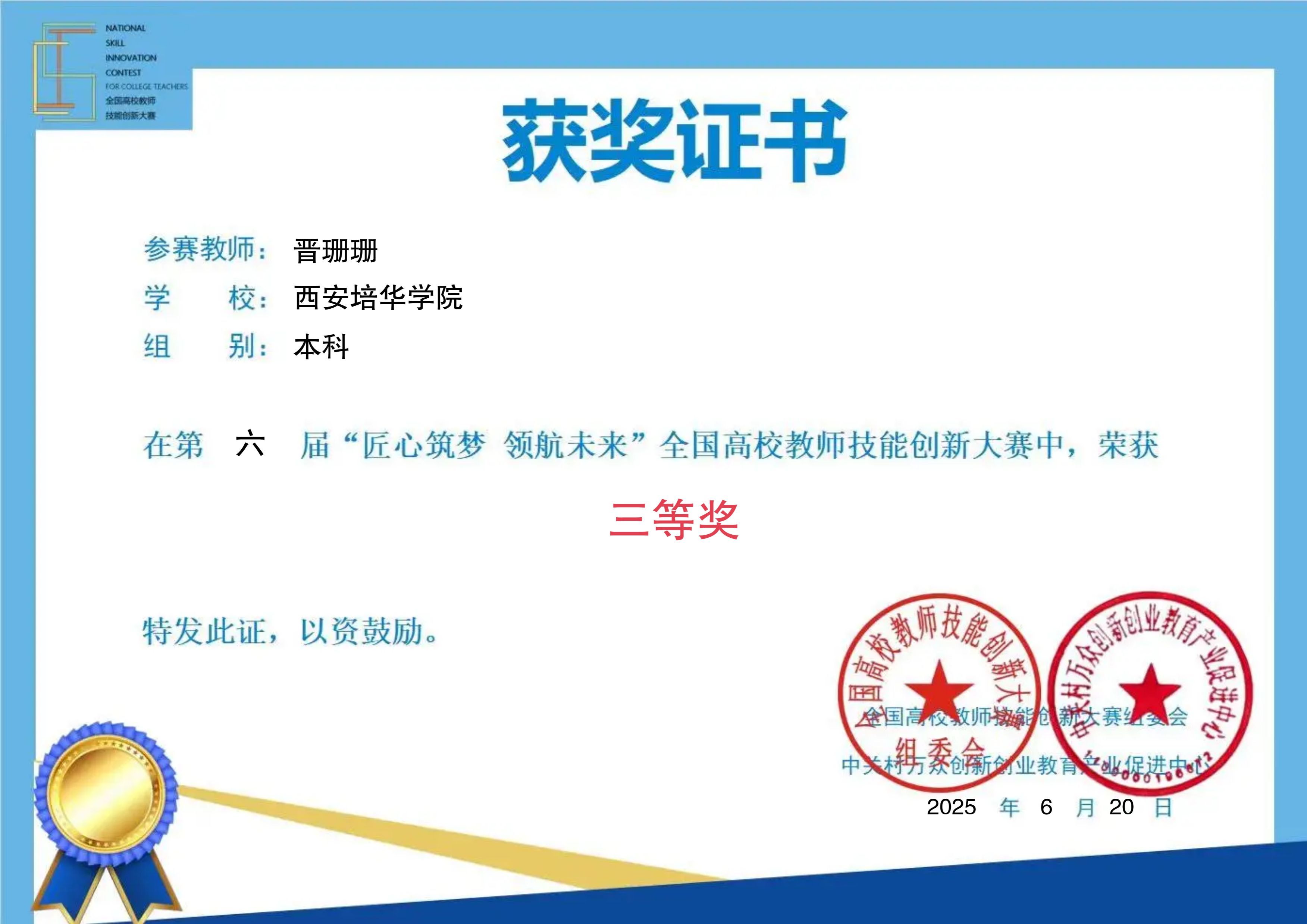 第六届“匠心筑梦 领航未来”全国高校教师技能创新大赛复赛成绩揭晓。本次大赛由全国高校教师技能创新大赛组委会与中关村万众创新创业教育产业促进中心联合主办,各省(区)赛组委会及各高校协办,并已被纳入中国高等教育学会高校教师教学竞赛清单。大赛已被中国高等教育学会高校教师教学竞赛官方清单所收录。大赛的主要目的是为了激发和提高高校教师在教学技能和创新能力方面的水平,从而推动教育教学改革的深入发展。