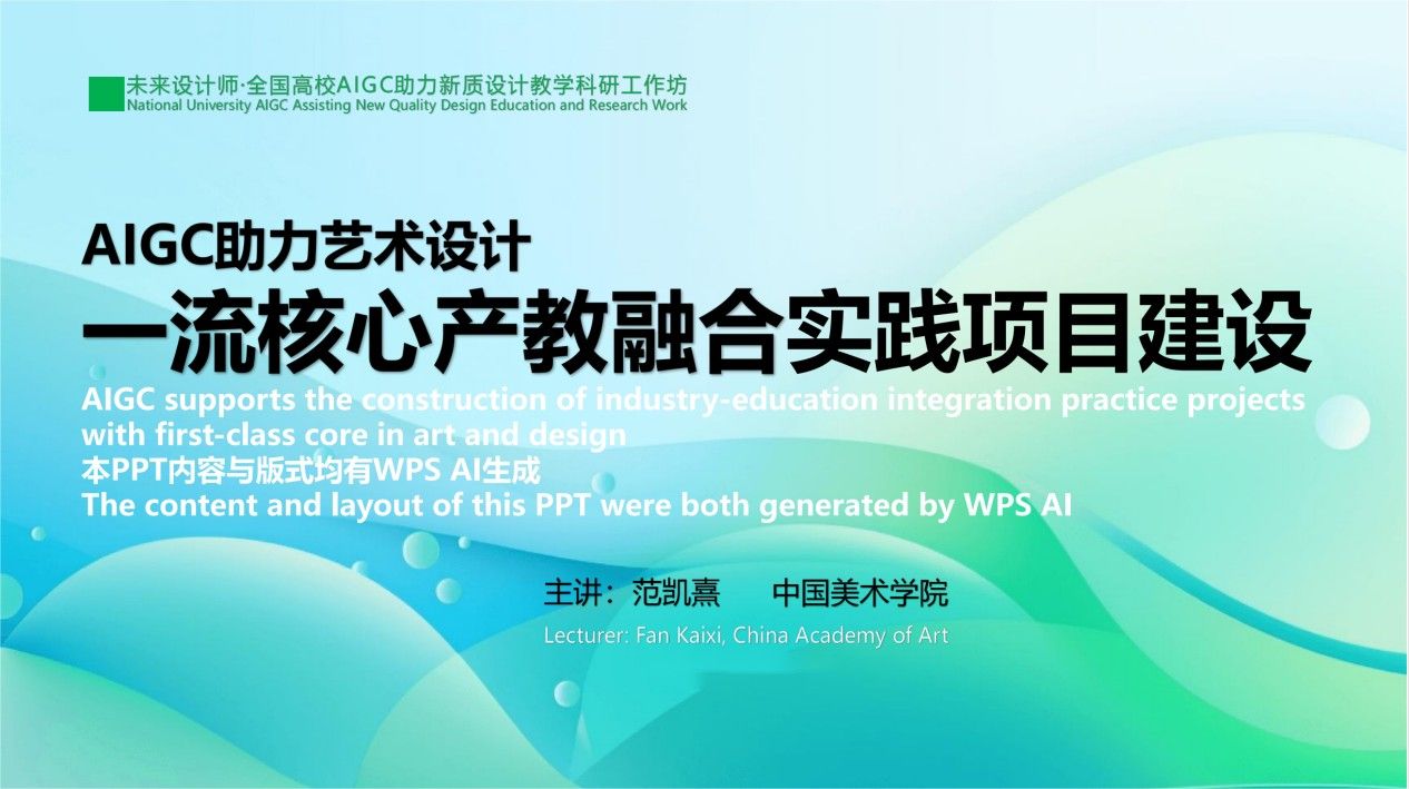 工作坊聚焦人工智能时代的设计教育转型,特邀中国美术学院博导、教育部高等学校社会科学发展研究中心研究员范凯熹:教授进行专题授课。范教授近年来致力于人工智能在设计教育运用的研究,在高校开展百余场 AIGC主题讲座。