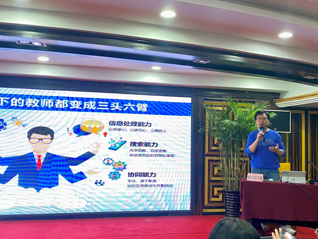 为了进一步助力学校教师拥抱AI技术,探索未来教学新路径,利用AI助力数字化素养与能力提升,主讲老师赖国雄在培训中向教师们介绍了AI技术在教育领域的应用和未来发展趋势,并通过实际操作演示了AI技术在教学资源制作中的具体应用。本次研修班旨在帮助教师们掌握 AI 技术在教学资源制作中的实际应用、在教育领域的发展趋势,并提升教师们的教学资源制作能力。在为期三天的培训中,教师们不仅学习了 AI 技术的理论知识,还通过实际操作深入了解掌握。同时,AI技术还可以为教师提供更好的授课方式,根据不同学生的学习能力和需求进行个性化教学,让学生更好地理解教学内容,提高学习效果。