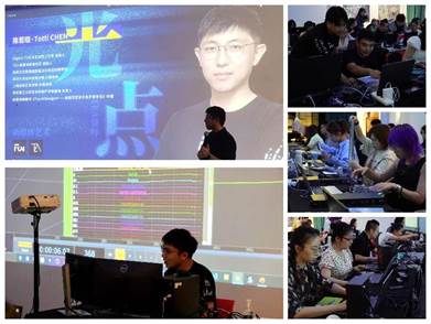本次课程主讲教师陈若琨Totti、丛浩天Frank、江珊Hill、张骏Jimmz、朱伟华Jason以及多位助教老师均有着丰富的行业经验及教学能力。课程内容涵盖音画互动视效、沉浸式交互投影、机械艺术装置等多方面,是一次从基础到全面的创作课程,具体包括理解可视化编程逻辑框架,使用硬件设备制作交互作品,我专业两位青年教师通过学习力争将这些知识和技能带回教学中,为学生们提供更加丰富和实践性的教学内容。