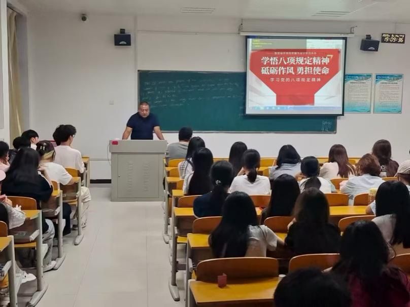 在解读八项规定核心要义时,南斌红书记没有停留在理论说教,而是结合具体要求逐一展开阐释。他谈到,“改进调查研究”本质上是“从群众中来、到群众中去”的工作方法,对于教育工作者而言,就是要深入师生、贴近实际,了解教学科研中的堵点难点,倾听师生的真实诉求;“精简会议活动”“厉行勤俭节约”等要求,则是倡导务实高效的工作作风,反对形式主义、铺张浪费,让有限的资源更多地投入到人才培养和学科建设中。他结合自身工作经历谈到,作风建设从来不是抽象的概念,而是体现在每一次调研走访、每一场会议组织、每一项工作落实的细节中,唯有脚踏实地、求真务实,才能赢得师生信任,推动工作落地见效。
