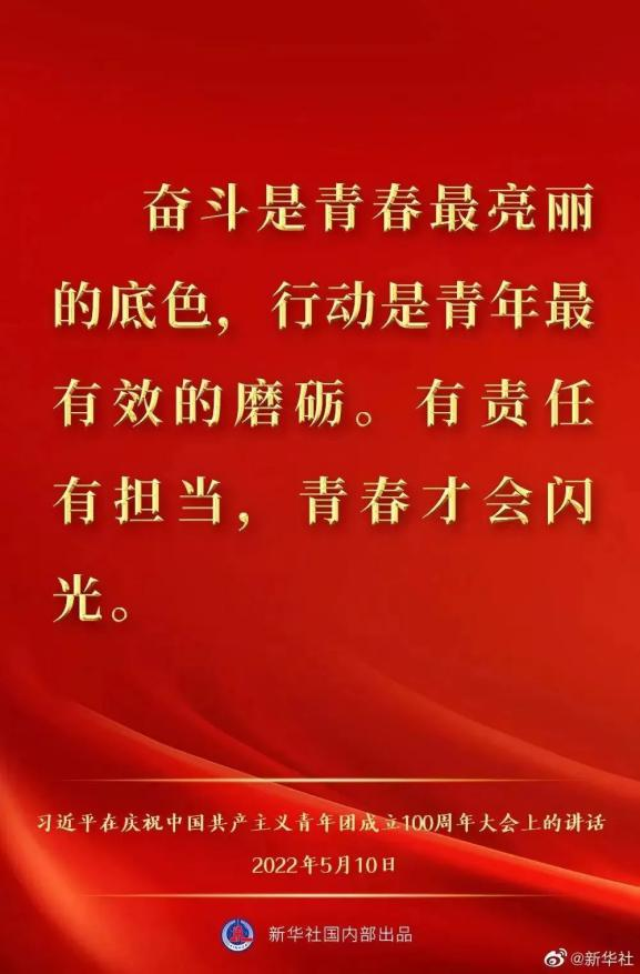 中共中央总书记、国家主席、中央军委主席习近平出席庆祝中国共产主义青年团成立100周年大会并发表重要讲话,一起来看金句!