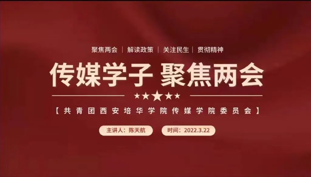 近日,第十三届全国人民代表大会第五次会议在北京人民大会堂开幕。3月22日下午,就2022年全国两会所传达的内容与精神,共青团西安培华学院传媒学院委员会于线上召开“传递会议精神 ,聆听传媒青声”主题会议。