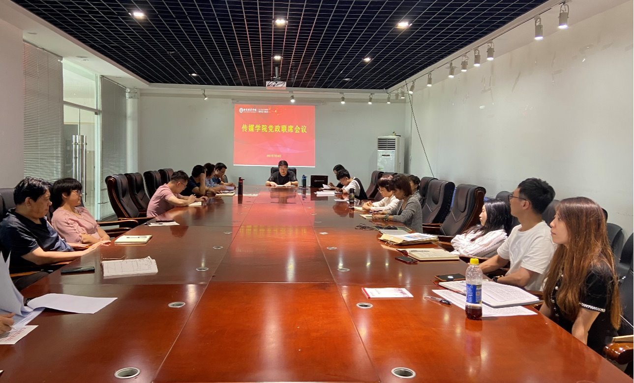 7月19日下午,传媒学院在第三会议室召开党政联席会议,安排部署近期本科审核评估、资产清查等重点工作,学院领导班子、各专业带头人、系主任、副主任、实验中心主任及教科研干事参加会议,院党委书记、行政副院长江俊瑞主持会议。