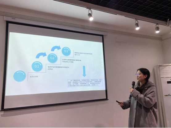 传媒学院院长助理张琨老师对本次比赛参赛教师进行总结点评,她强调应用型课程建设需要各专业教师进一步关注真实工作岗位对专业人才的需求度,关注人才培养与知识、能力、素质目标之间的关系,同时更加需要注重课程建设中思政元素的融入。同时,她指出在课程教授中层次可以更加鲜明和细化,注重培养学生八大能力,积极产出符合市场基本需求的核心课程。