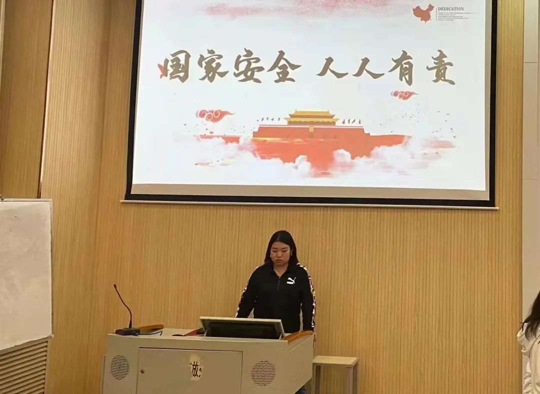 雷诗萌(团委学生兼职副书记):作为当代大学生,我们必须提高自身素质,把促进国家安全和社会稳定的思想教育贯穿到平时的学习、生活及活动中去,我们要加强国家安全相关法律知识学习,牢固树立国家安全意识,筑牢思想防线,树立维护国家安全、保守国家秘密、人人有责的观念。作为学生干部应该起到良好的带头作用,时刻保持警醒状态,增强严格保密意识,依法履行法律义务。我们要将维护国家安全和社会稳定列为首要任务,成为国家安全和社会稳定的自觉维护者。只有将自觉维护国家安全利益转换为自觉行动,愿意为国家安全贡献更多力量,国家安全利益才能得到切实保障。