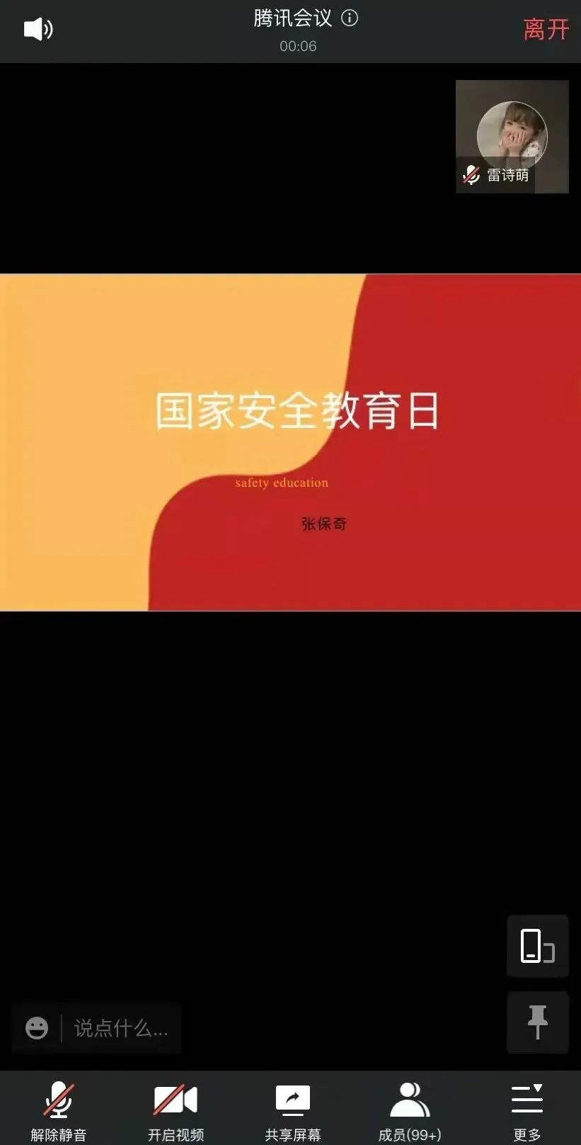 会议上,王雅璇老师提到了国家安全与我们每个同学都息息相关,维护国家安全没有“局外人”,你我都是主角。接着向同学们介绍了国家安全包括16个方面的基本内容以及生活中需要警惕的危害国家安全的行为。最后希望同学们都能树立“国家安全,人人有责”的观念,加强国家安全相关法律知识学习,履行法律义务,自觉维护国家安全。