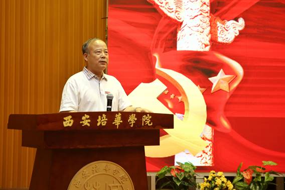 西安培华学院党委书记在致辞中对本次庆祝建党100周年短视频征集大赛的成功举办表示热烈的祝贺,对参赛同学、获奖师生的辛勤付出表示衷心的感谢。他表示,在喜迎建党100周年的日子里,培华师生用短视频的形式讲述“红色故事”,传播“城市形象”,传承“非遗文化”,助力“创新创业”,形式新颖,积极向上,充分展现了新时代大学生的精神风貌和创新力量。他强调,西安培华学院是一所具有红色传承基因的民办高校,站在两个一百年的历史交汇期,全体师生要学党史、强信念、铭党恩,坚定信念,扎实学识,敢于作为,勇于担当,以实际行动向建党百年献礼。