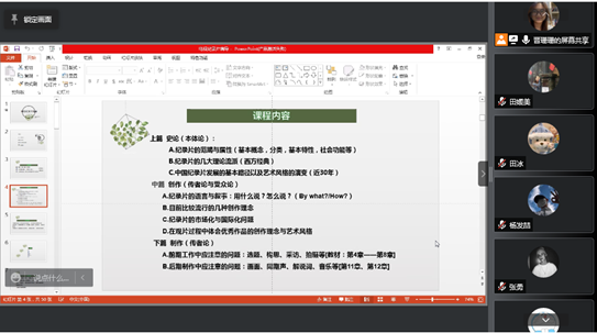 由于疫情原因,我院目前有3位教师实施线上教学,教学第一周周一戏剧影视文学专业赵怡萍老师的《剧作基础》、广播电视编导专业晋珊珊老师的《电视纪录片编导》课程如约与学生相见在云端,两位实施线上授课的教师结合课程内容和考核方式给学生们进行详细讲解,针对学生有疑问的地方答疑解惑,确保实现线上教学与线下教学“同质等效”。