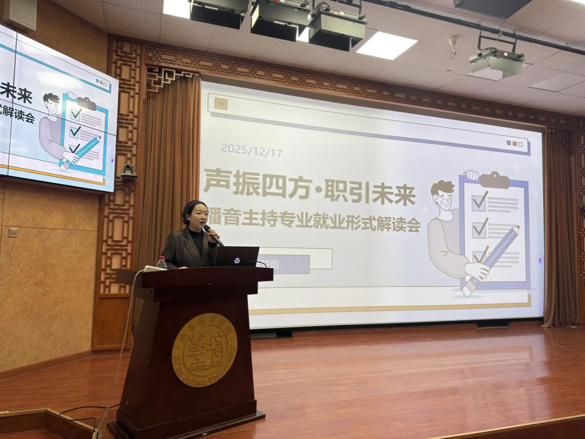 2025年12月17日下午四点,"声振四方・职引未来" 播音主持专业就业形式解读会顺利召开。本次解读会聚焦2025年高校毕业生就业政策红利,深度剖析传媒行业发展新趋势,为播音主持专业学子搭建了政策解读、职业规划与能力提升的全方位交流平台。