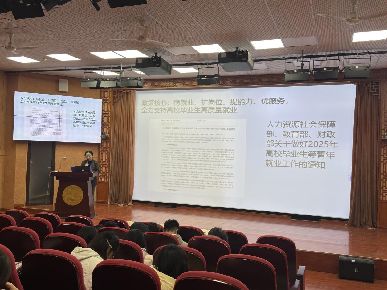 会上,主讲人张梦怡围绕人力资源社会保障部、教育部、财政部联合印发的《关于做好 2025 年高校毕业生等青年就业工作的通知》展开详细解读,明确 "稳就业、扩岗位、提能力、优服务" 的政策核心。针对播音主持专业特性,重点梳理了多渠道就业岗位资源。在行业发展与区域机遇板块,解读会重点介绍了西安微短剧产业的爆发式增长态势。针对职业规划与能力提升,解读会给出精准建议。政策层面,"双千" 计划开设的微专业与职业培训课、百万青年技能提升行动的培训补贴、免费求职实训营等资源,为学子提升专业能力提供有力支撑;陕西省 "宏志助航" 计划则通过专项培训、招聘会等形式,助力毕业生尤其是困难群体毕业生高质量就业。能力提升方面,鼓励大二学子紧抓考证关键期,考取软件技能类、新兴领域类证书,同时注重抗压能力、破局能力、沟通协调力与汇报文案能力的综合培养。此外,解读会还分享了政策与招聘信息的获取渠道,包括国家及地方官方平台、校园内部渠道等,帮助学子精准对接资源。