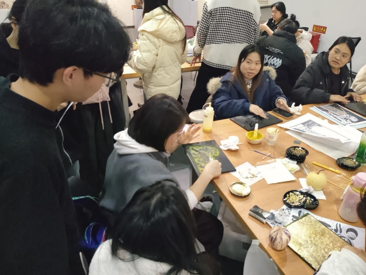 工坊为期四天,课程设置兼顾理论深度与实操价值。教授通过现场示范、手把手指导等形式,系统讲解水洗描金工艺的材料遴选、工具运用及创作技法,助力师生将以往零散的工艺经验梳理转化为规范的知识体系。课堂中,师生围绕跨文化工艺融合主题展开深入探讨,既深入掌握了水洗描金核心技艺,又了解了东南亚工艺的特质与发展趋势,有效突破本土思维局限。同时,此次工坊亦为教师搭建了国际化教学交流平台,助力更新教学理念,为工艺美术专业教学注入新动能。