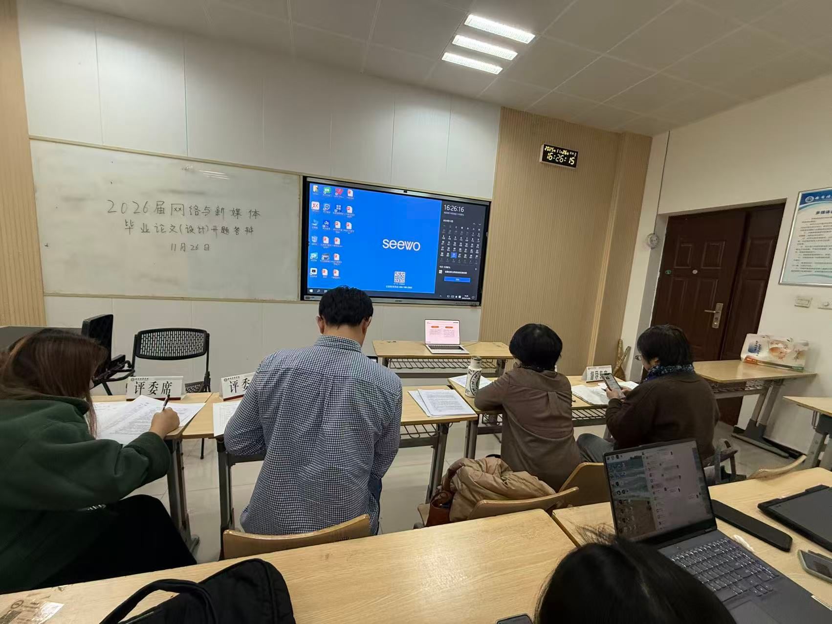 2025年11月26日下午14:30,网络与新媒体专业2026届本科毕业论文(设计)开题答辩在线上与线下同步顺利举行。本次答辩共分为四个小组,整体组织有序,流程规范,全面检验了学生的研究课题可行性和研究方法科学性。