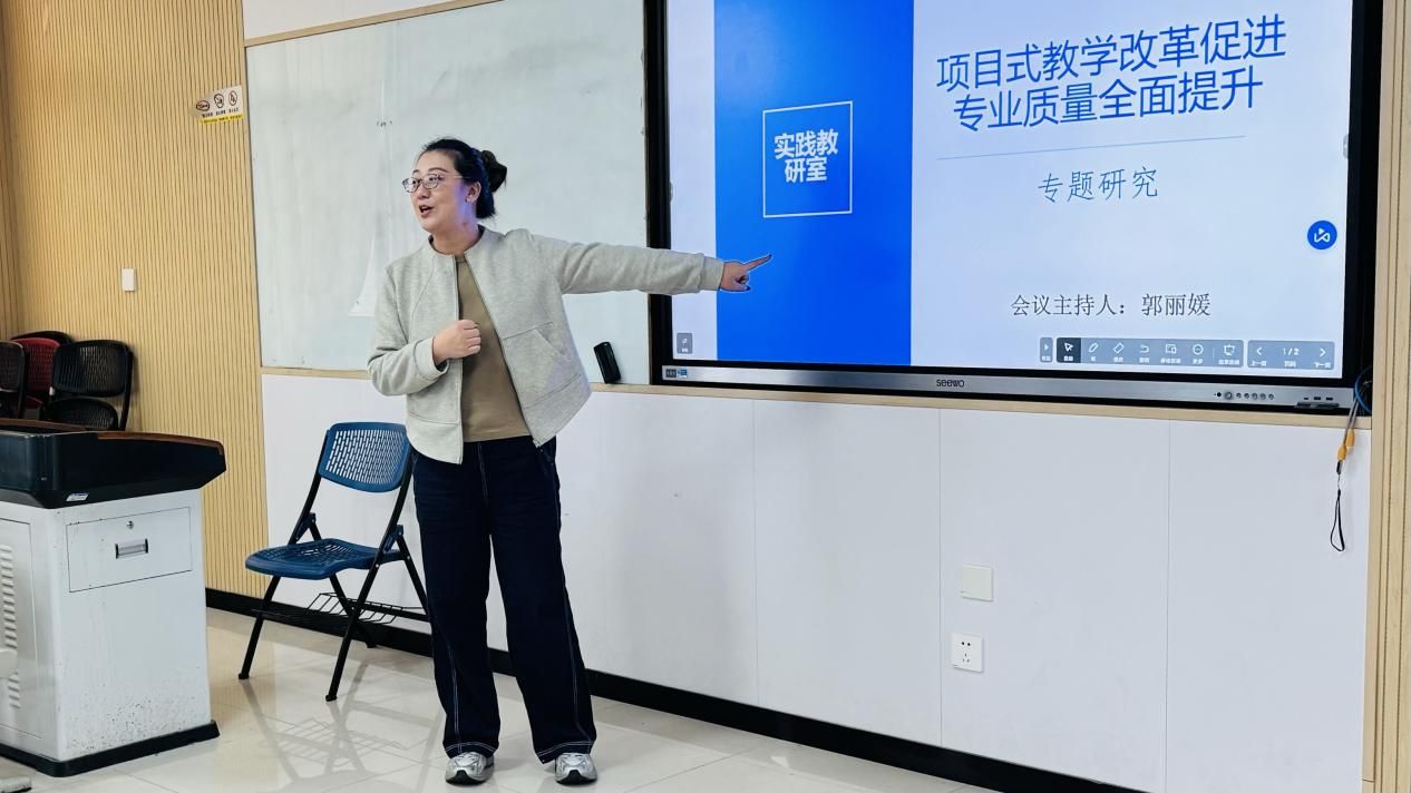 2025年10月15日,传媒与设计学院广播电视编导专业影视创作教研室成功举办了“项目式教学改革促进专业质量全面提升”专题研讨会。会议由广播电视编导专业郭丽媛教师主持,郭丽媛老师对于”项目式“教学有多年的经验,所授课程中也植入多种类型的项目实践,所以在此次会议中,郭丽媛老师从专业相关项目类型、各类项目创作的可行性、项目式教学方式创新、项目产出及推广等多个方面进行了分享和讲解。