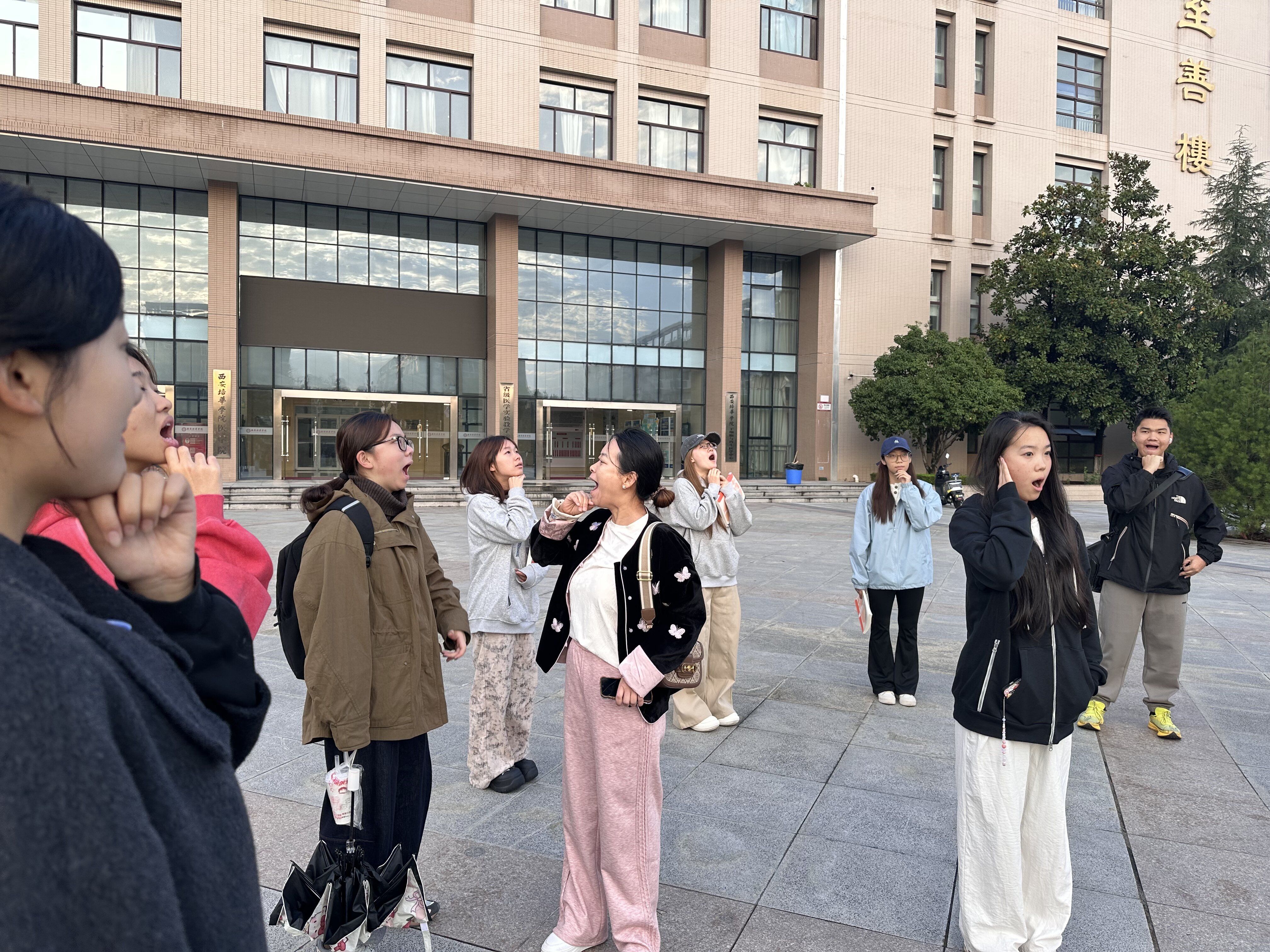 晨光熹微,声韵悠扬。今日清晨,西安培华学院校医院东喷泉广场已热闹起来——传媒与设计学院播音与主持艺术专业2025级全体学生齐聚于此,以饱满的热情开启早练声活动,也拉开了为期11周专业晨训的序幕。