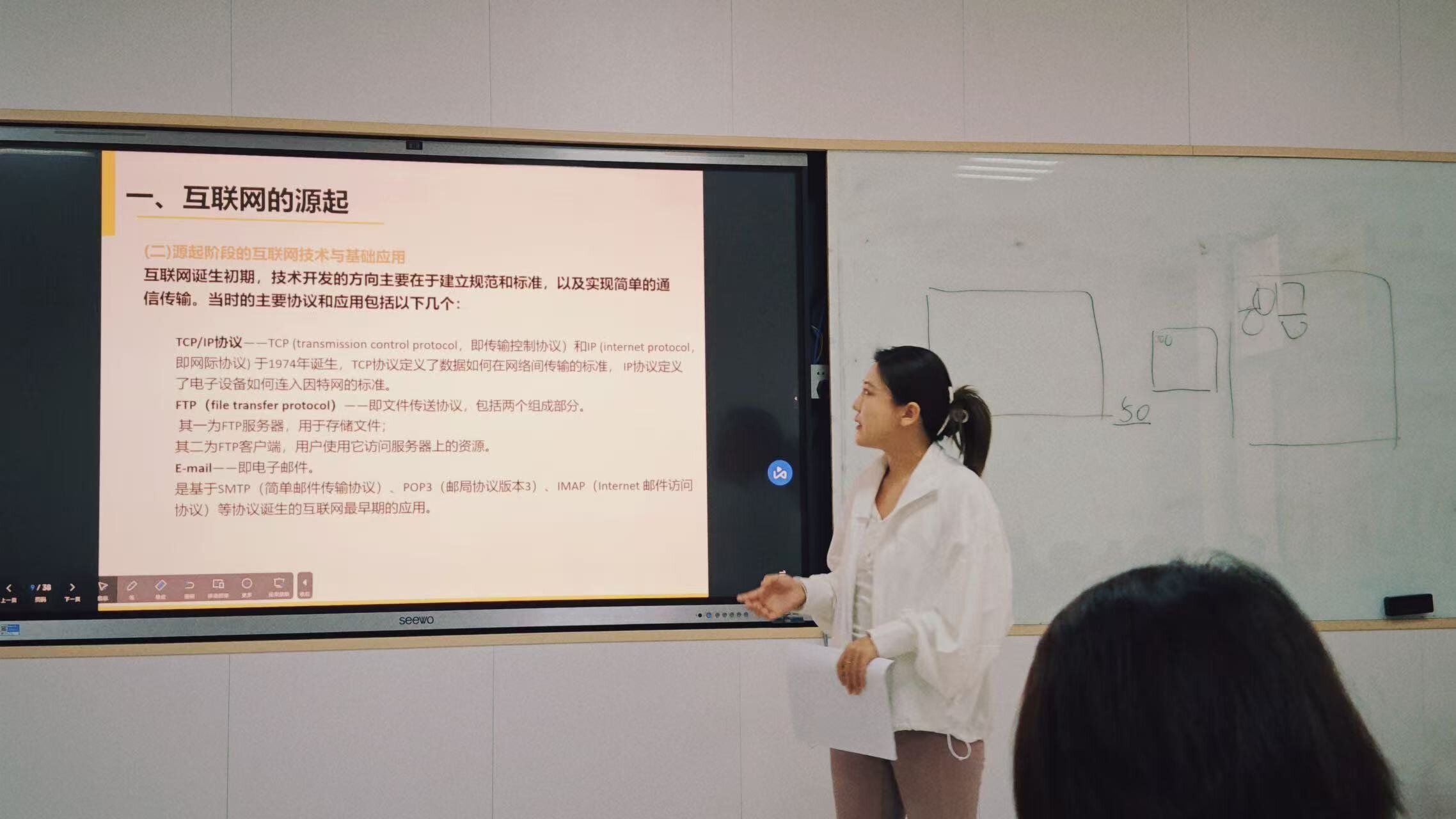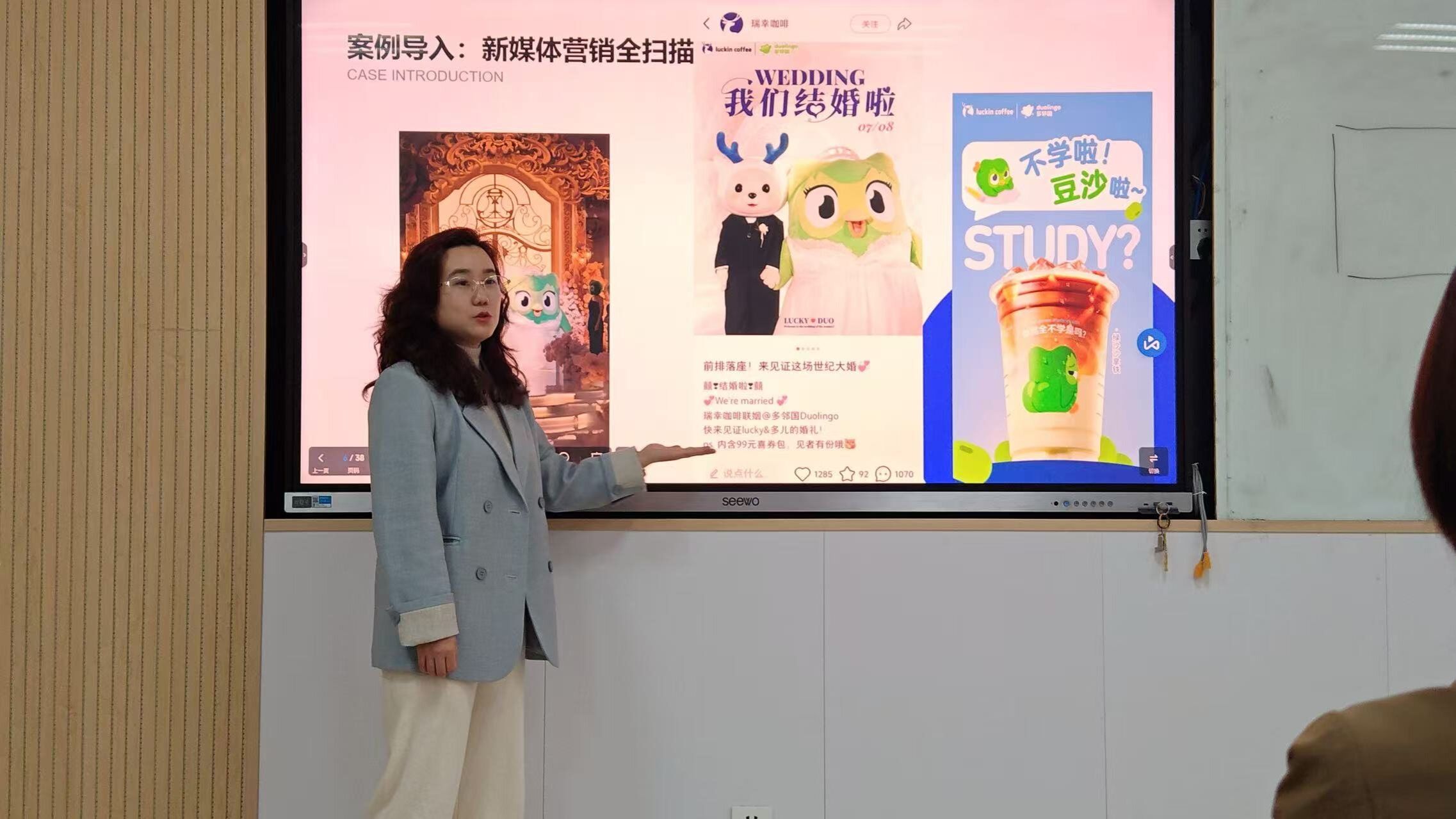 在教学展示环节中,吴双老师以《社会调查方法》课程为例,系统阐述了问卷调查、深度访谈、观察法等多种社会调查方法的特征与适用场景,内容丰富、逻辑清晰,为学生理解社会科学研究方法提供了实践导向。仝师瑗老师讲授的《数字媒体技术概论》课程从图形与图像的区别入手,通过实例讲解数字化表达与媒介视觉传达的核心原理,启发学生从媒介技术角度理解新媒体内容的生成逻辑。李瑞老师的《网络文化》课程则以网络从1.0到3.0时代的演进为主线,深入剖析了网络文化形态的变迁与用户角色的转变,引导学生思考数字时代的文化自觉与传播责任。王楠老师则展示了《VI设计与制作》和《网络新媒体营销》课程教学片段,强调理论与实践并重,通过项目化教学激发学生创新思维与职业能力。刘慧楠老师以《网络与新媒体概论》课程为基础,从互联网的源起切入,系统讲述了网络与新媒体学科的重要理论与发展脉络,帮助学生全面认识网络传播格局的演进与创新趋势。