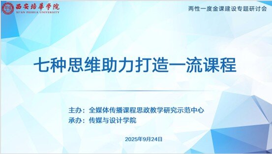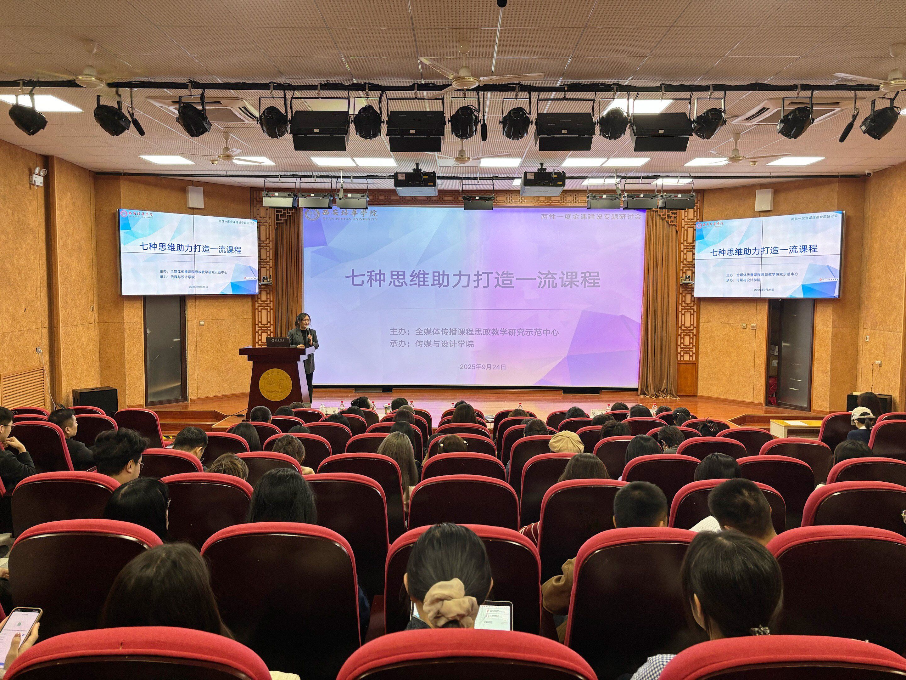 为进一步深入推进课程教学改革,提高课程的高阶性、创新性和挑战度,推动审核评估整改任务落实,淘汰“水课”、打造“金课”,切实提高课堂教学质量和育人水平,由全媒体传播课程思政教学研究示范中心主办,传媒与设计学院承办的“两性一度金课建设”专题研讨会9月24日下午在汇知楼国学大讲堂成功举办。此次研讨会特别邀请了西安欧亚学院副教授、国家级一流课程负责人卢卓元老师作专题分享,活动由传媒与设计学院副院长张荣花主持,学院全体专任教师参加。