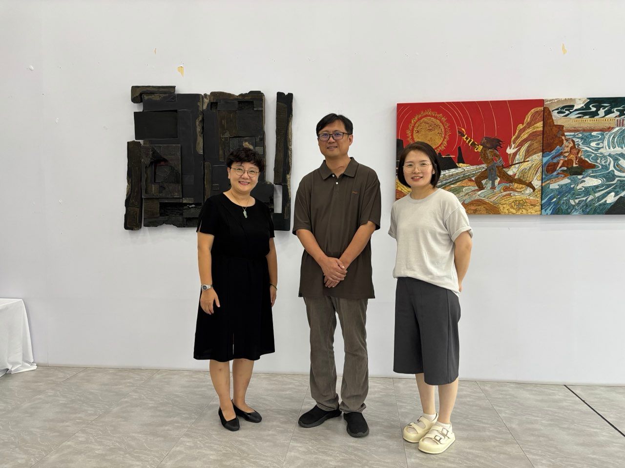 常务副院长徐莹、环境造型设计系主任贾亚丽与金晖院长合影