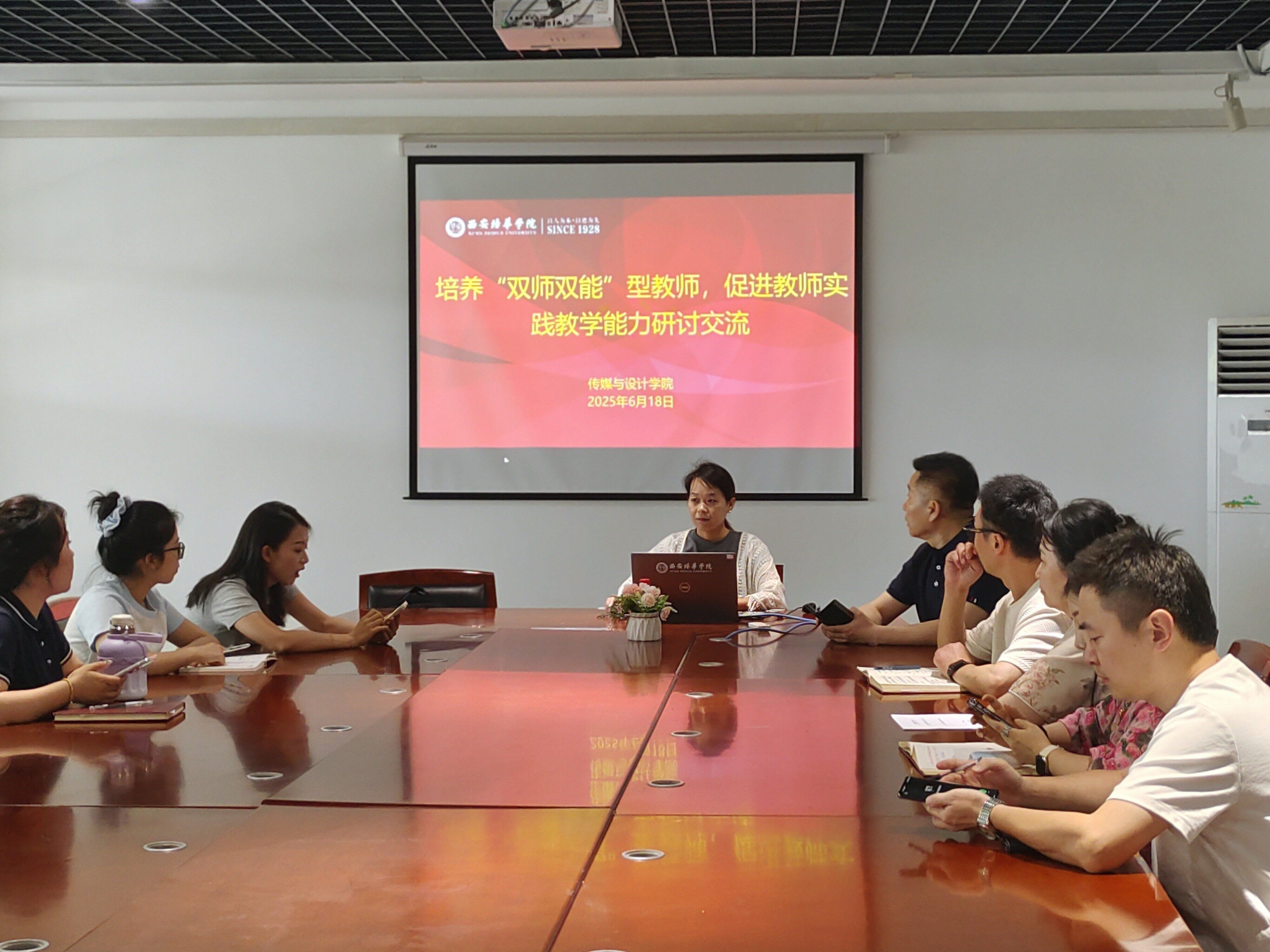 会议开始,汤云敏老师指出:“双师双能型教师不仅要具备扎实的学科知识,更要拥有解决行业实际问题的能力。学校将通过‘校企互聘、项目共研、平台共建’三管齐下,推动教师从‘课堂型’向‘实践型’转型。”提出,老师应该结合当下传媒环境,积极利用企业资源,践行“双师双能”教师要求,提高课程建设与教学实践能力等。