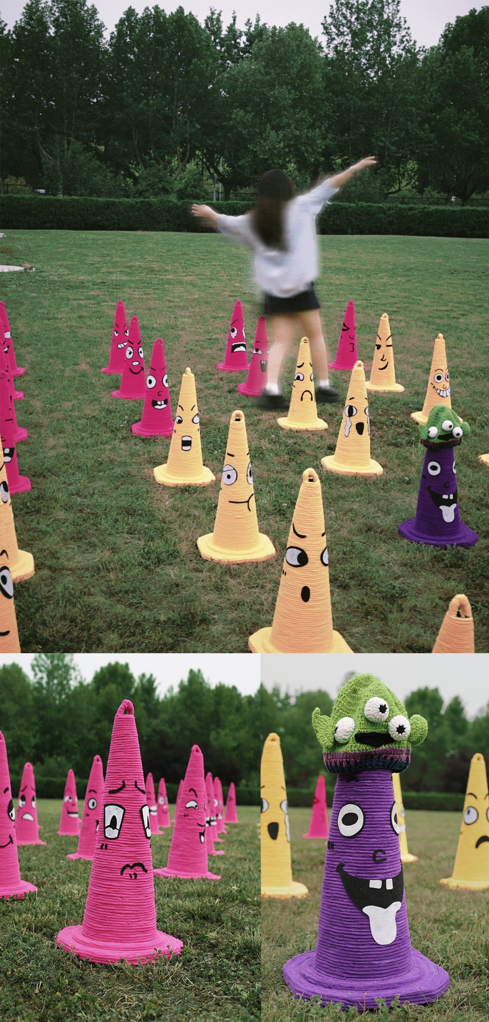 学生通过真实场域中的创作与调整,深化对公共艺术社会性、空间交互性的理解,远超传统课堂的理论灌输效果。此次公共艺术设计通过大型空间装置、交互设计、地贴艺术以及艺术共创项目和奥特曼扭个怪兽、纸间筑梦师、碎片美术馆等活动既为商业空间增添了艺术氛围,同时也增强了学生的综合实践能力,通过“做中学”使学生综合能力得到有效提升。通过装置艺术增加校园空间活力,这不仅是技艺的展示,更是公共精神的启蒙与实践。每一件作品背后,都凝聚着学子们对社会的关怀、对空间的尊重以及对未来的想象,展现了公共艺术不止于审美,更关乎连接、对话与改变的多元力量。