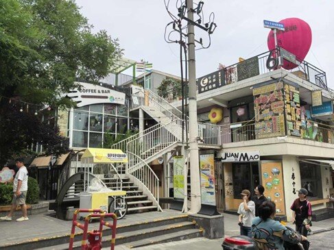 环境设计专业将建筑摄影课堂搬进城市真实场景,选定建国门老菜场与西影电影制片厂作为实践基地。这两个地点代表了两种不同的更新模式:社区活化与工业遗产再生。取景框里,年逾七旬的薛奶奶身着桃红外套穿过咖啡馆小巷,身后是色彩斑斓的涂鸦墙,城墙下的老菜场在晨光中苏醒——环境设计专业学生按下快门,将这一幕 市井烟火与时尚艺术交融 的画面永久定格。