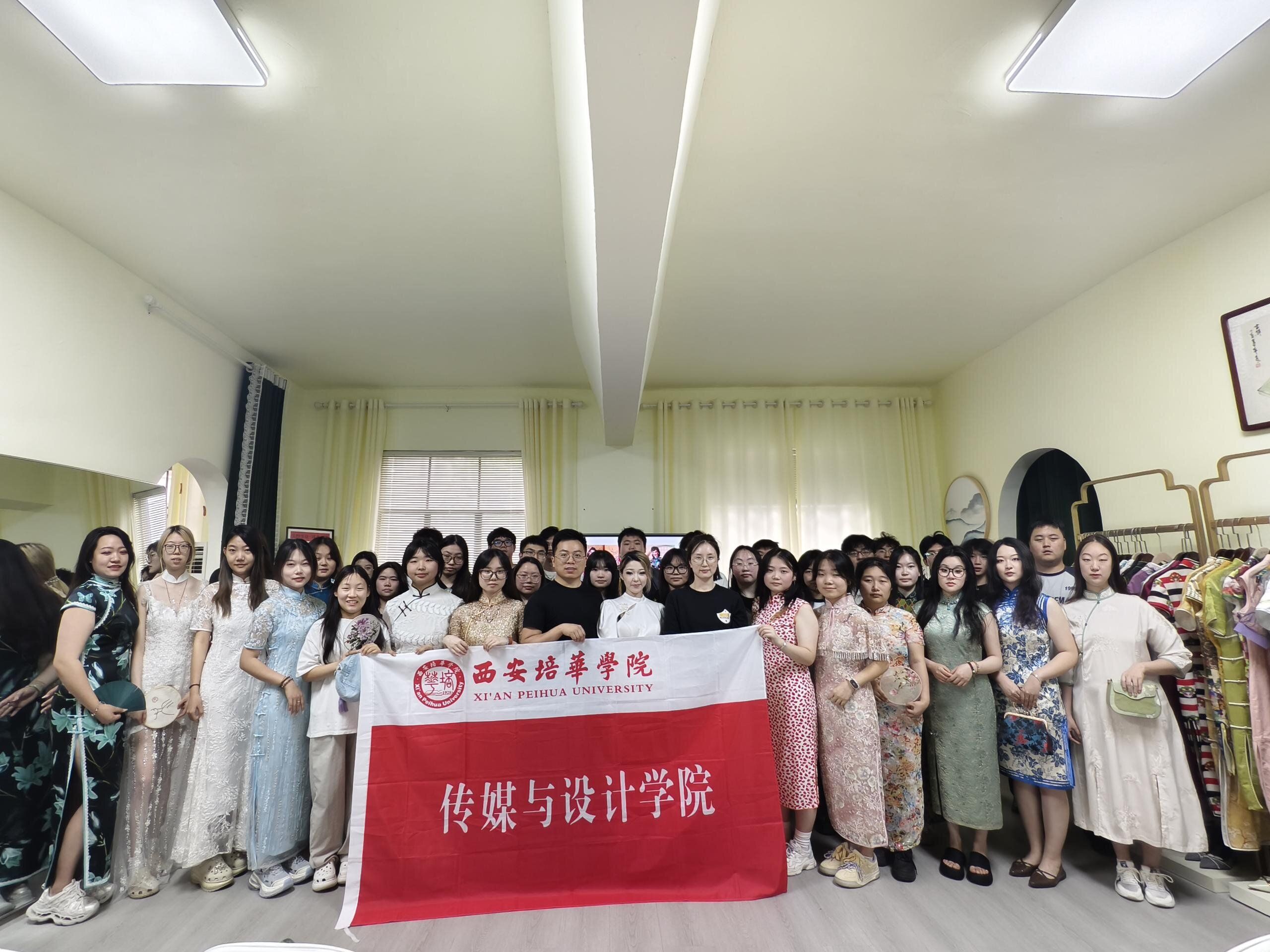 为深度解析高端定制服装的设计内核与工艺精髓,2025年6月3日,西安培华学院传媒与设计学院韩张伟、李欣两位教师带领2022级服装与服饰设计专业01班、02班全体学生,赴本土高端定制标杆企业——陕西典中晟服饰有限公司(旗下品牌:凤凰吟高定展厅)开展专题调研。本次调研聚焦高定服装产业链核心环节,通过沉浸式体验助力学生构建对奢侈服饰品牌的系统性认知。